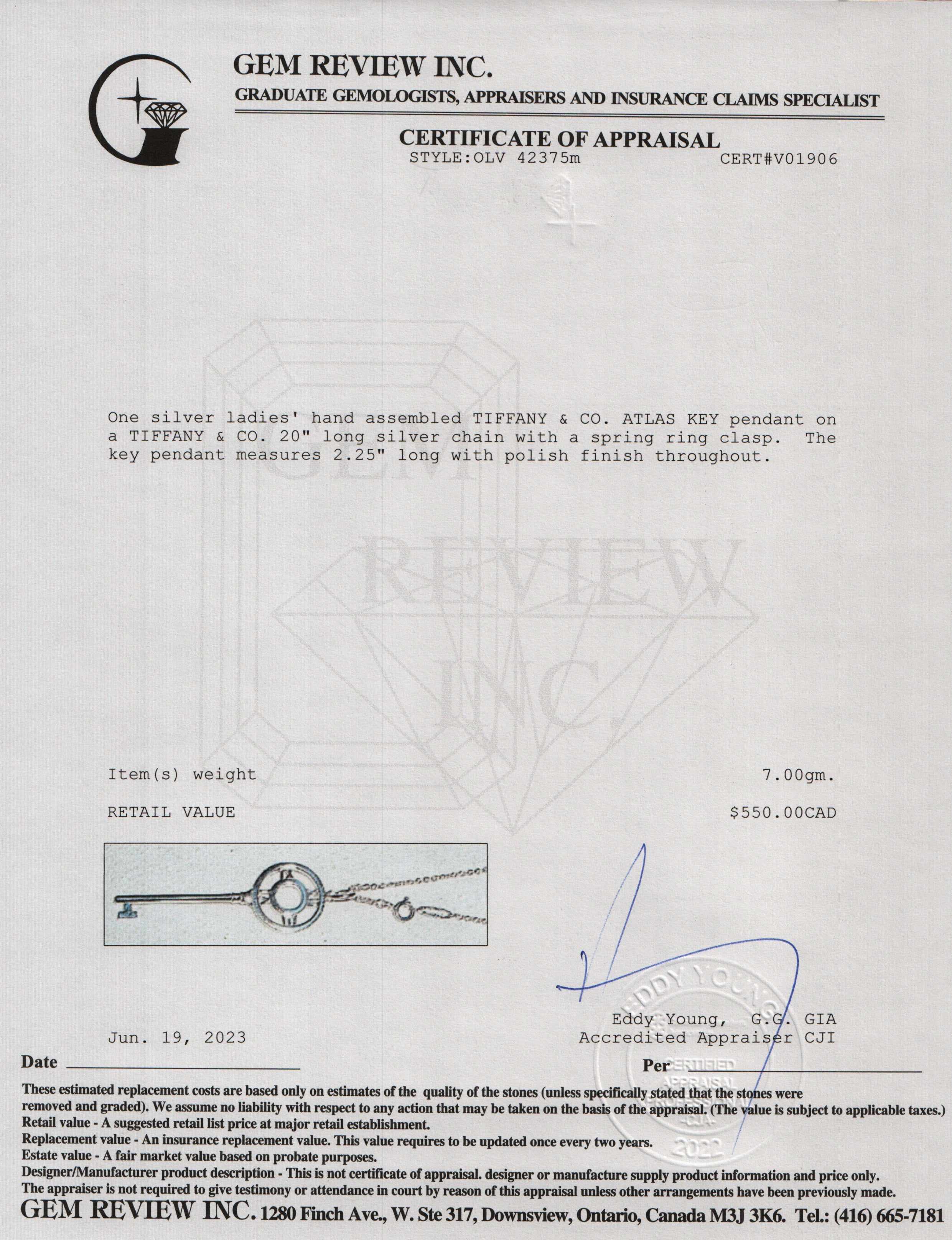Tiffany & Co. Sterling Silver Atlas Key Pendant Necklace