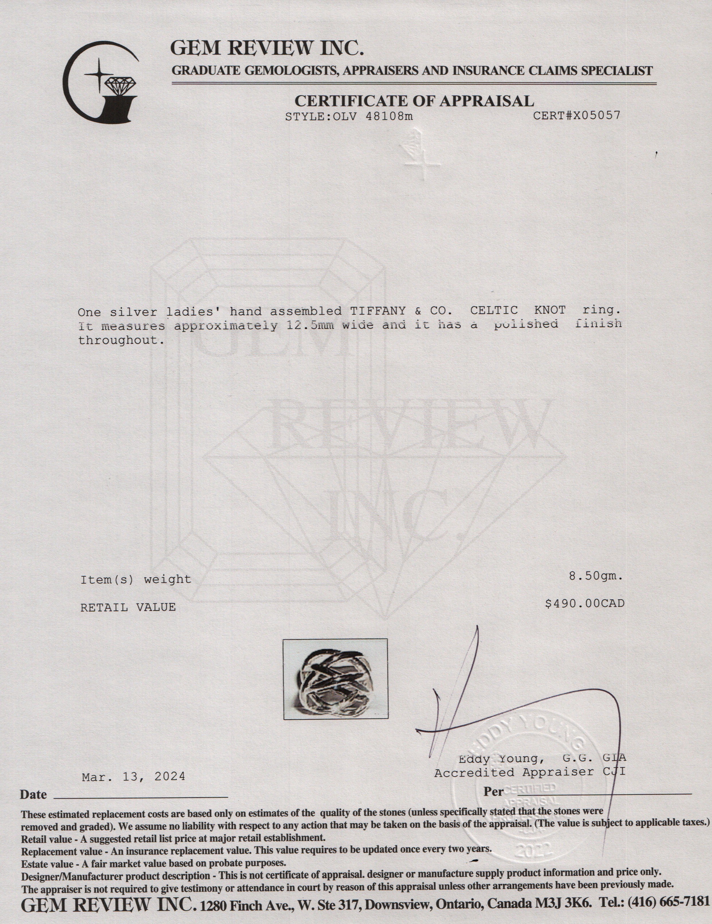 Sterling Silver Celtic Knot Band, Ring Size 8.25