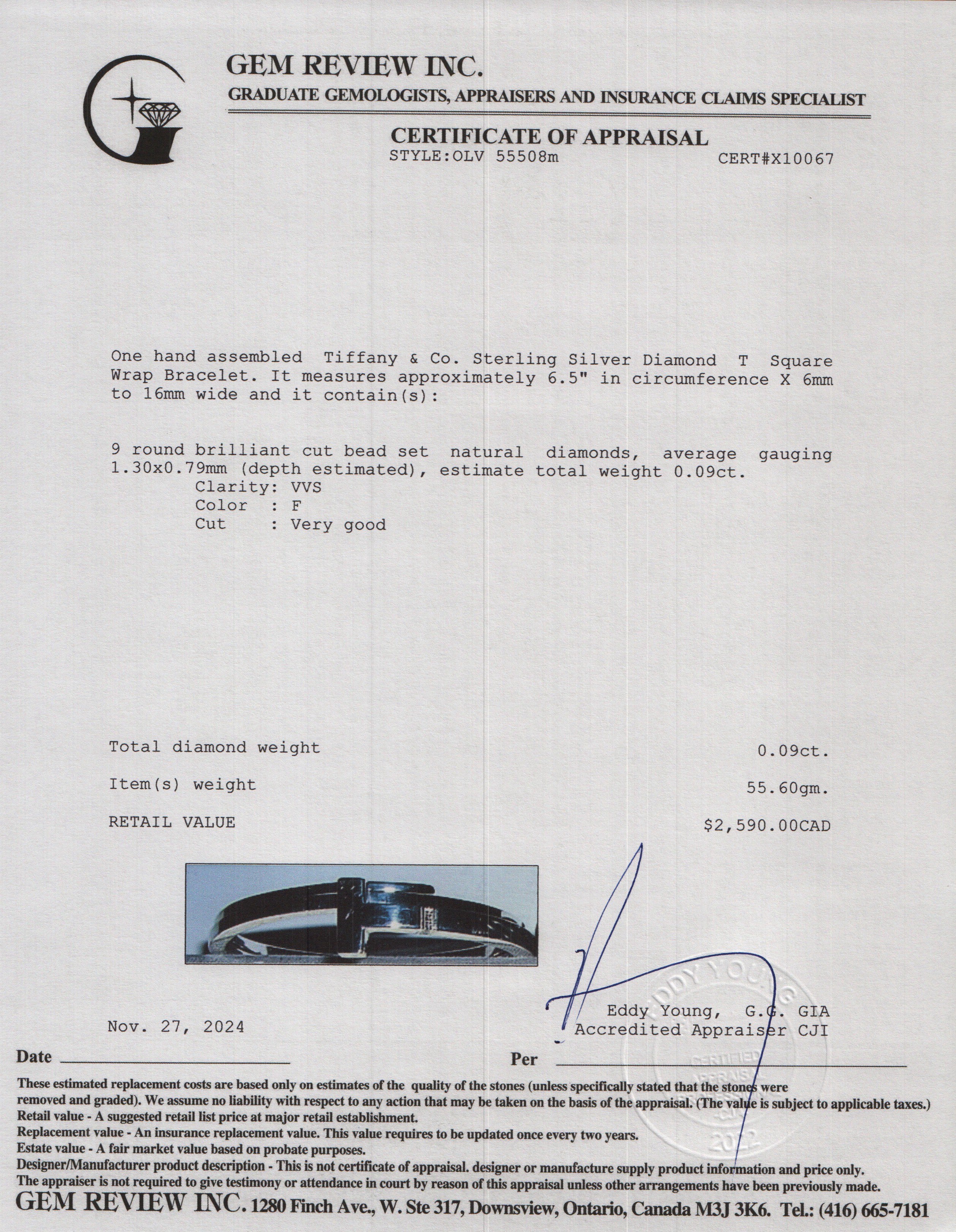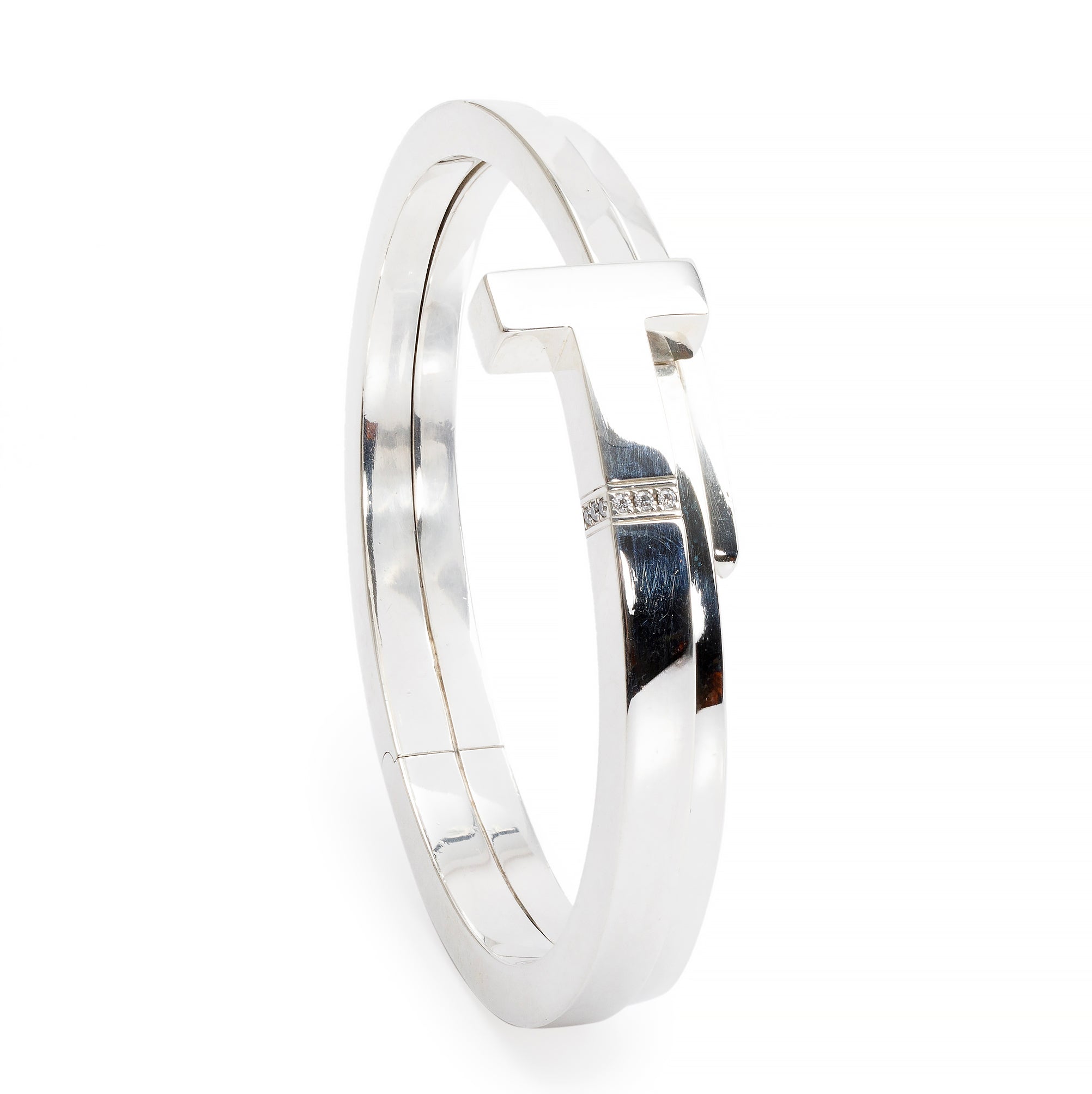Sterling Silver Diamond T Square Wrap Bracelet w/ Box