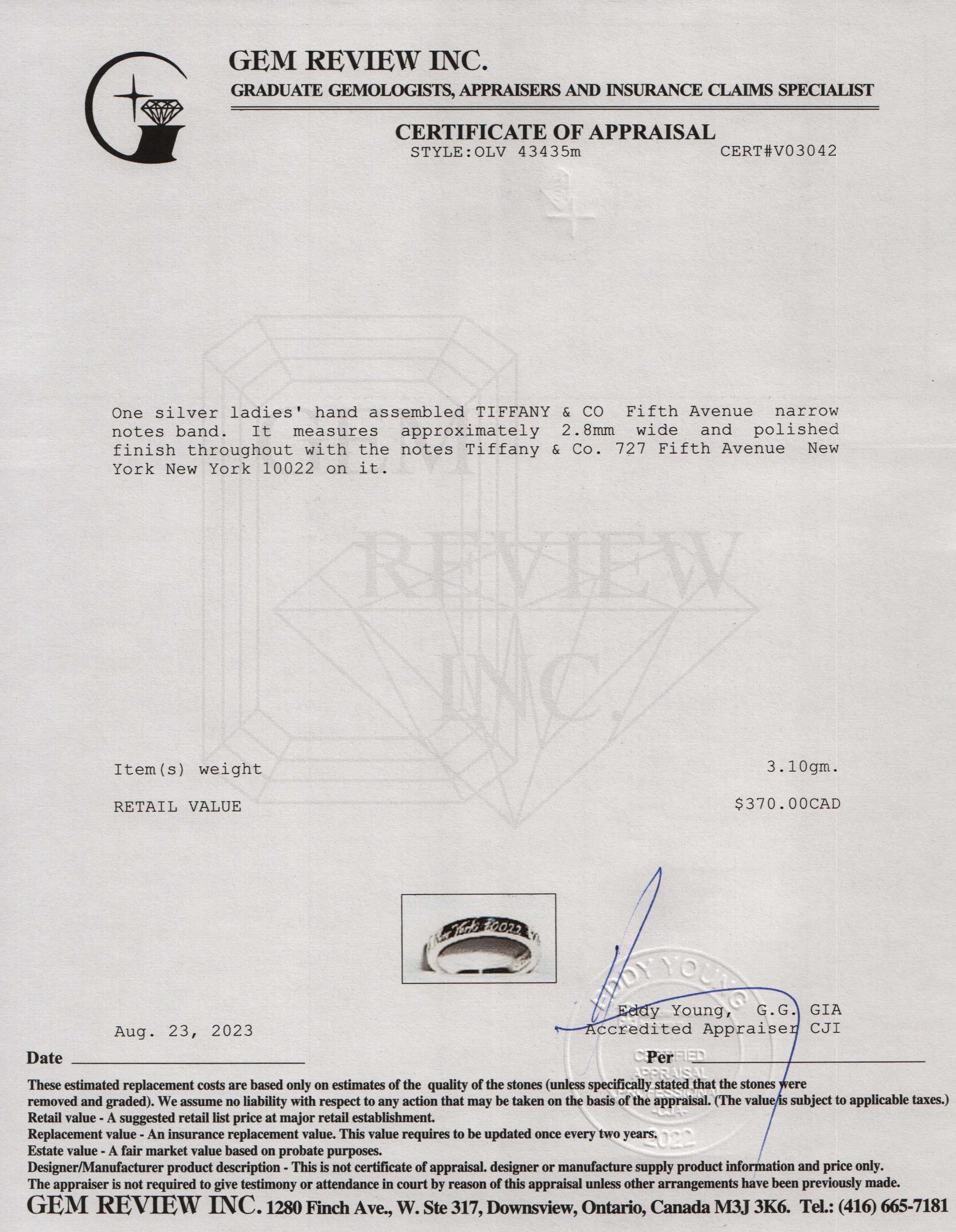 Sterling Silver Fifth Ave Narrow Notes Band Ring