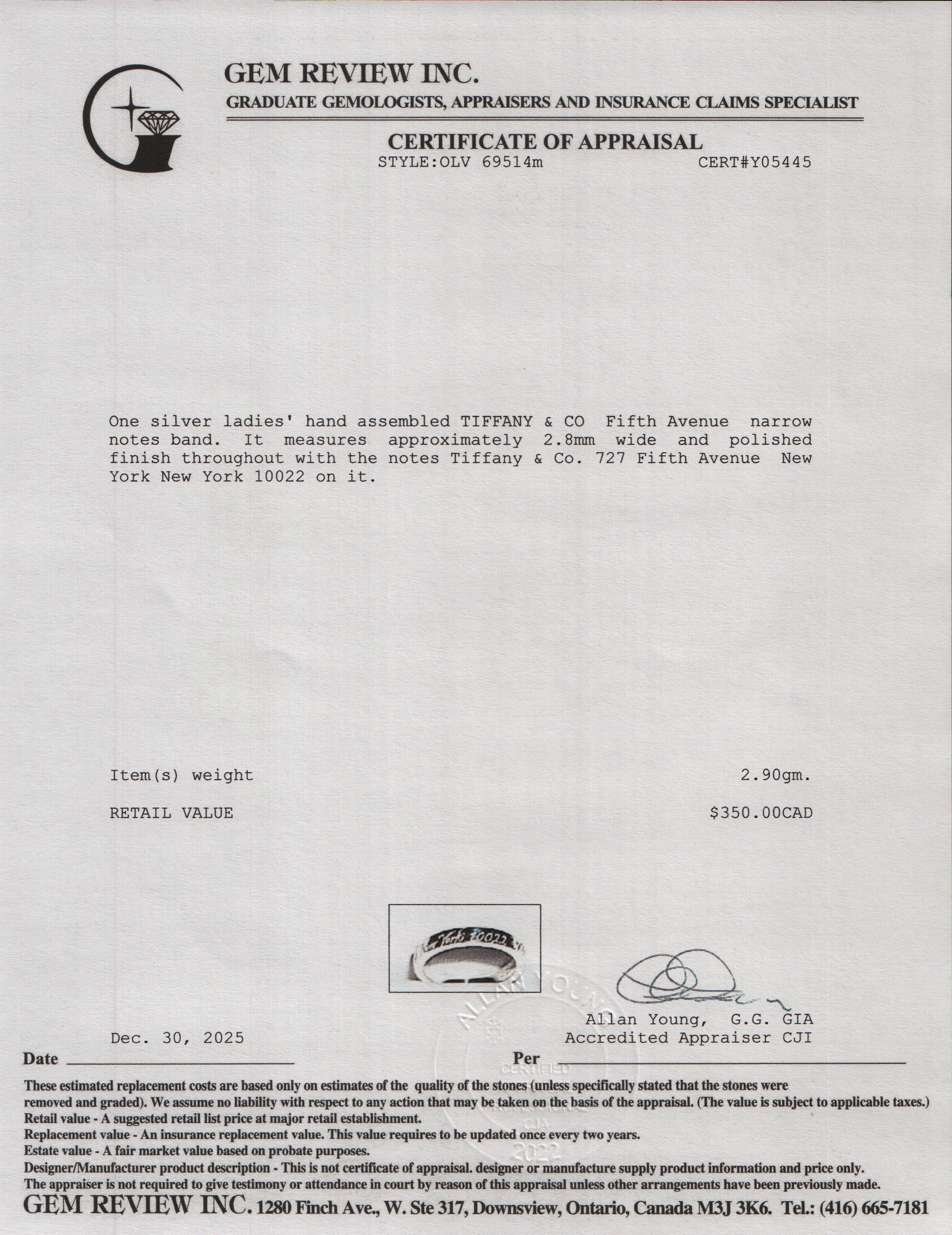 Sterling Silver Fifth Ave Narrow Notes Band Ring, Size 4.75