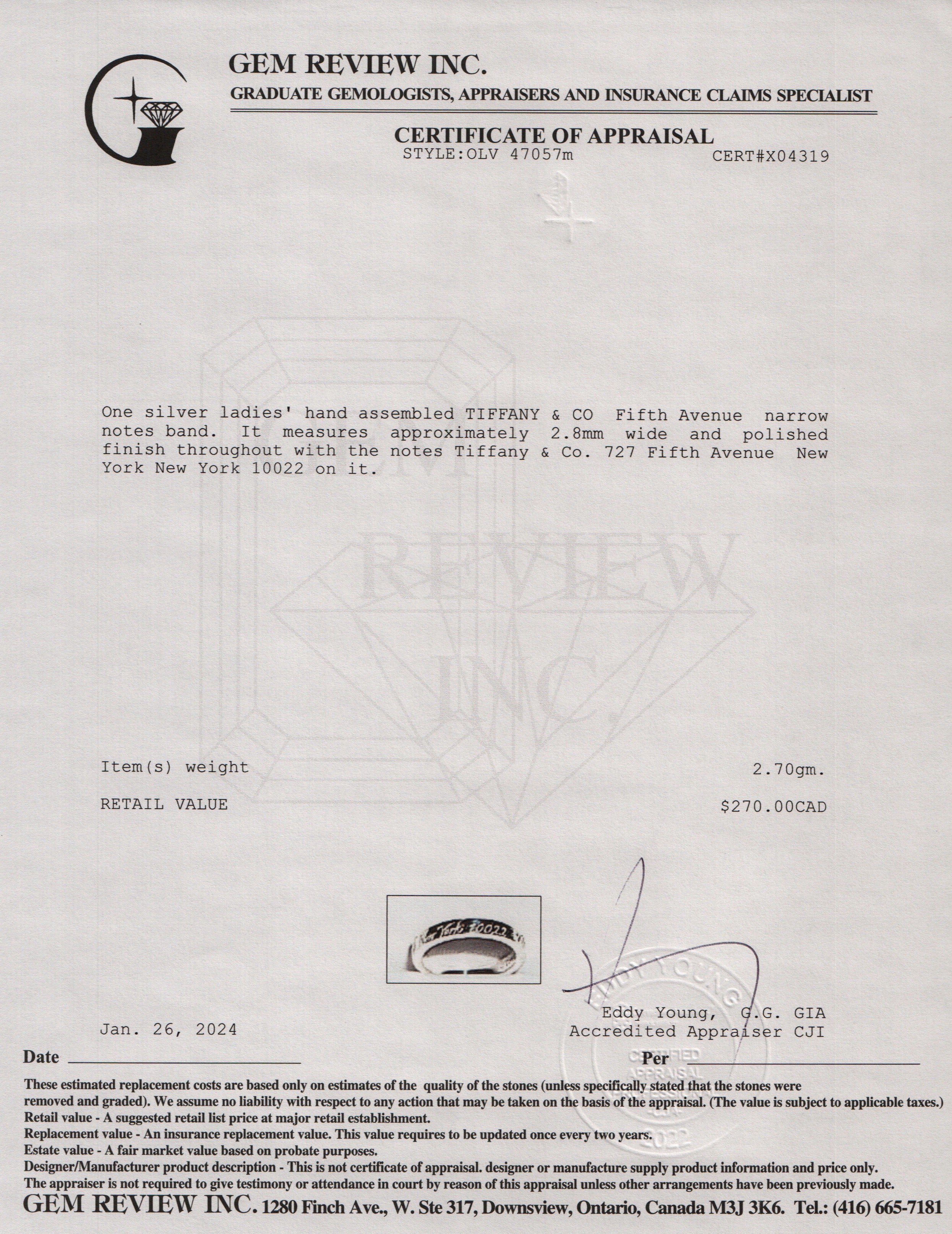 Sterling Silver Fifth Ave Narrow Notes Band Ring, Size 6.5