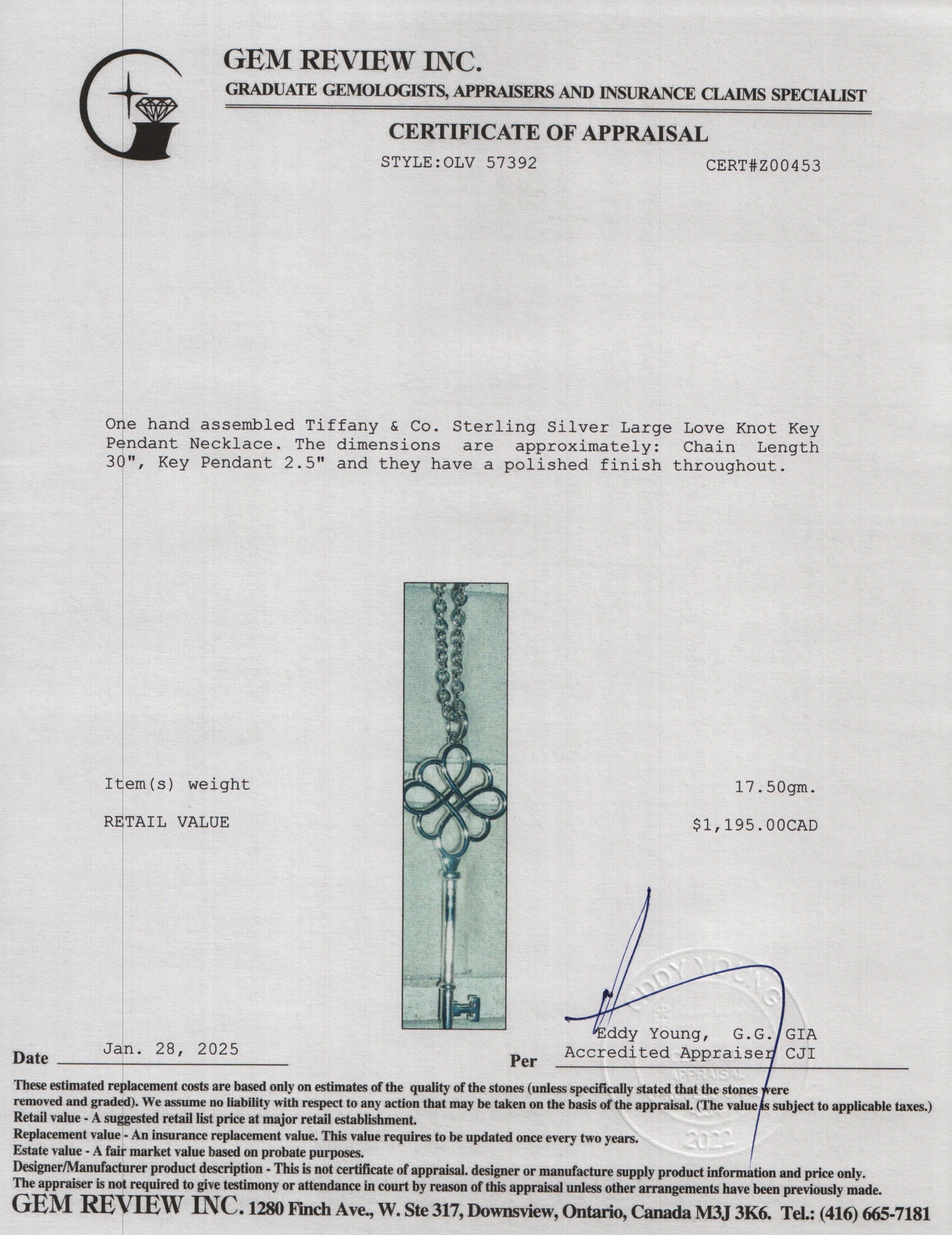 Sterling Silver Large Love Knot Key Pendant Necklace