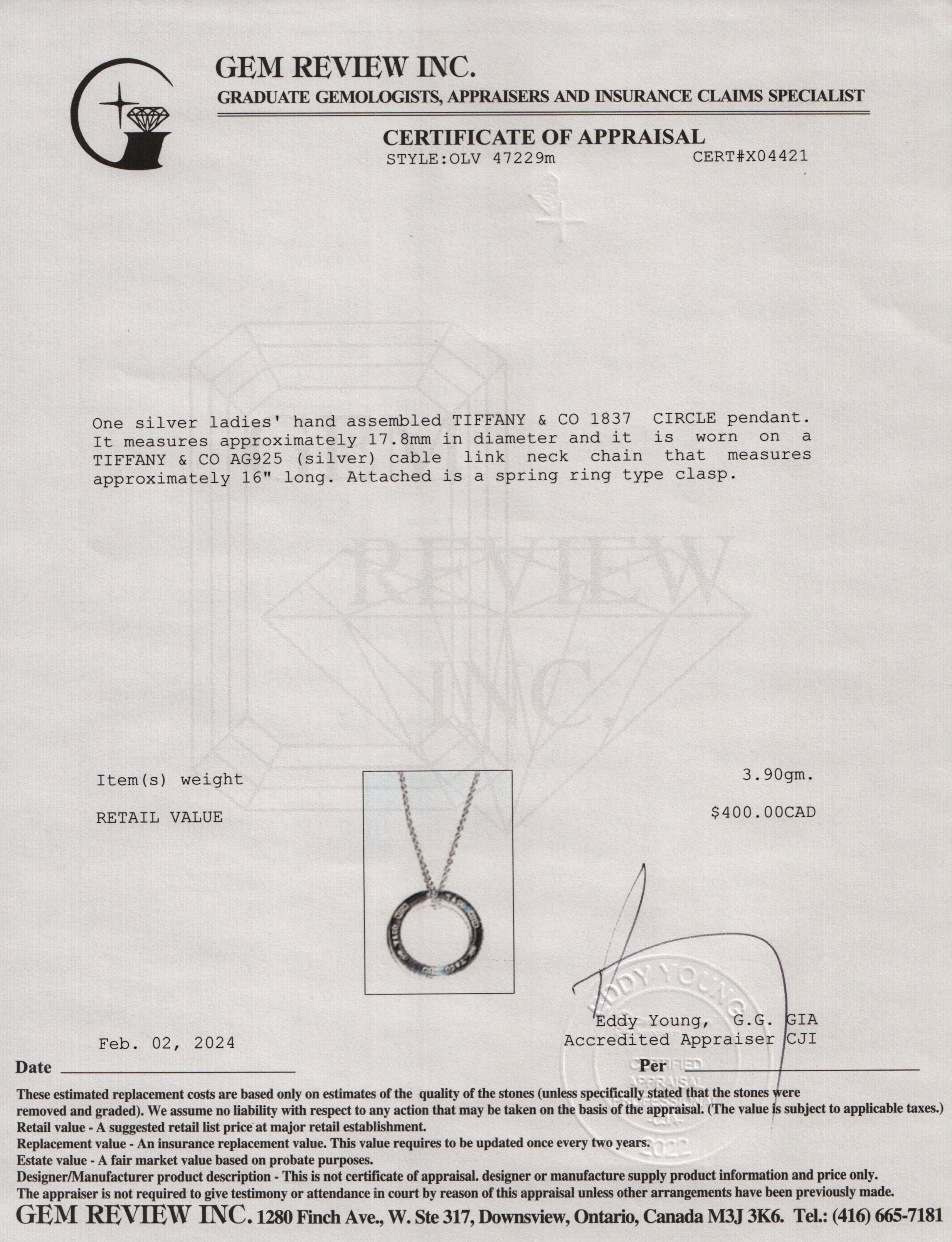 Sterling Silver Medium 1837 Circle Pendant Necklace