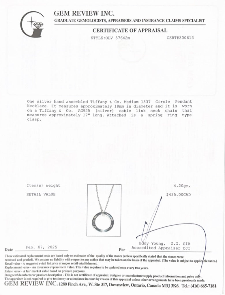 Sterling Silver Medium 1837 Circle Pendant Necklace