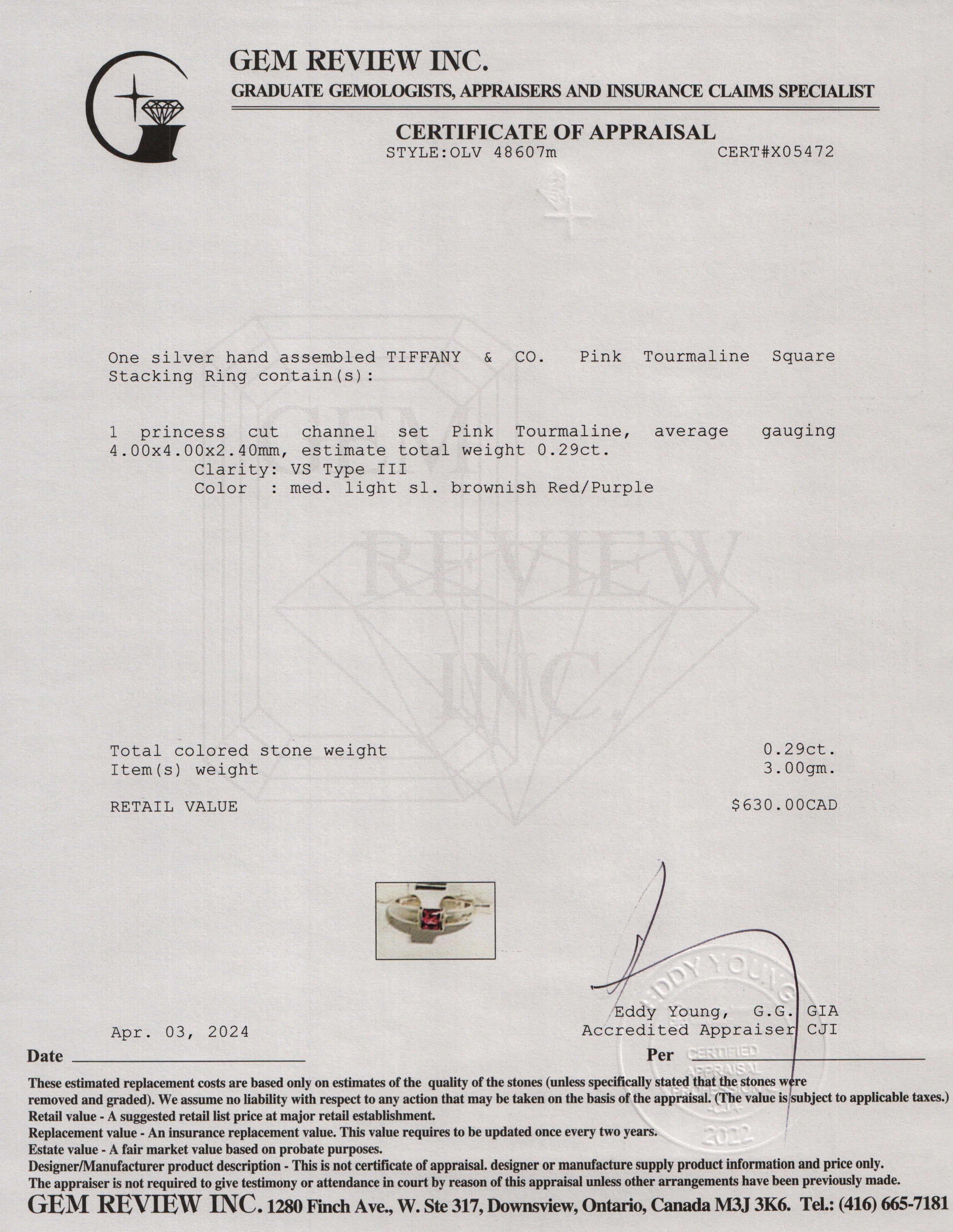Sterling Silver Pink Tourmaline Square Stacking Ring, Size 6.5