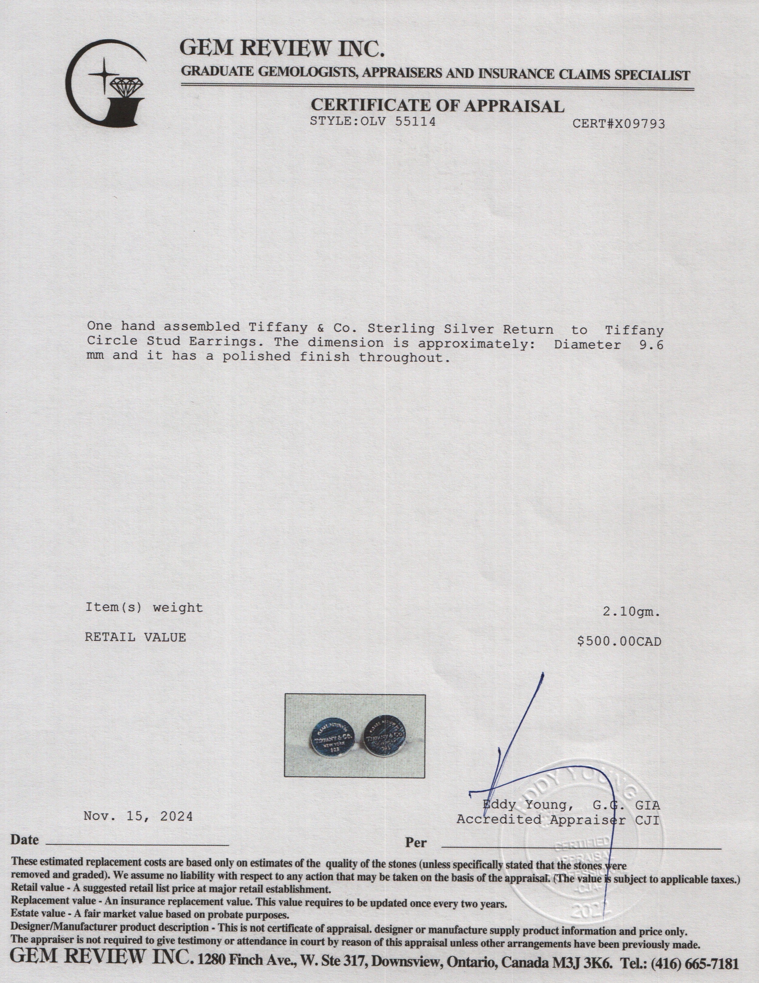 Sterling Silver Return to Tiffany Circle Stud Earrings