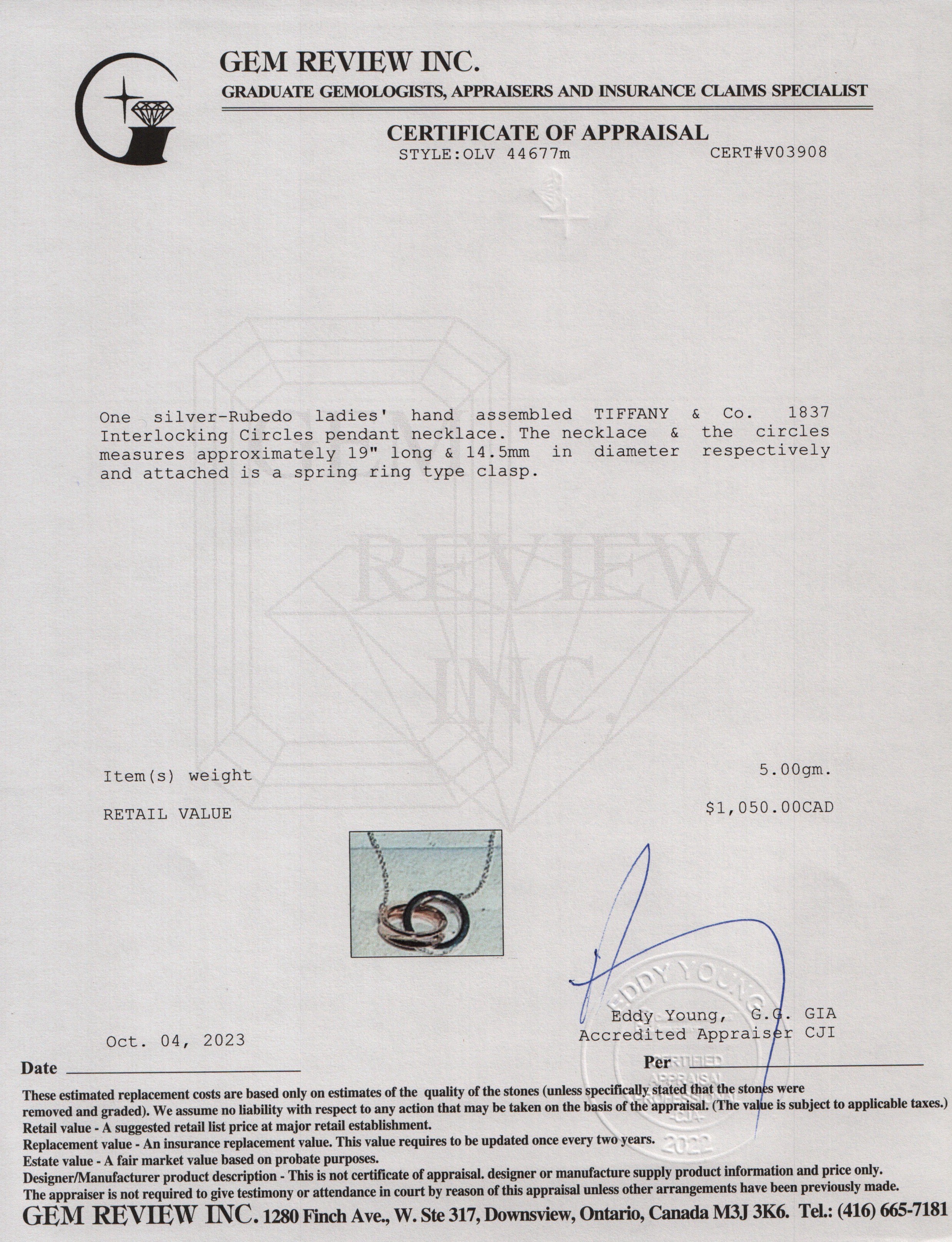 Pendant 14.5 mm, Chain Length 19"