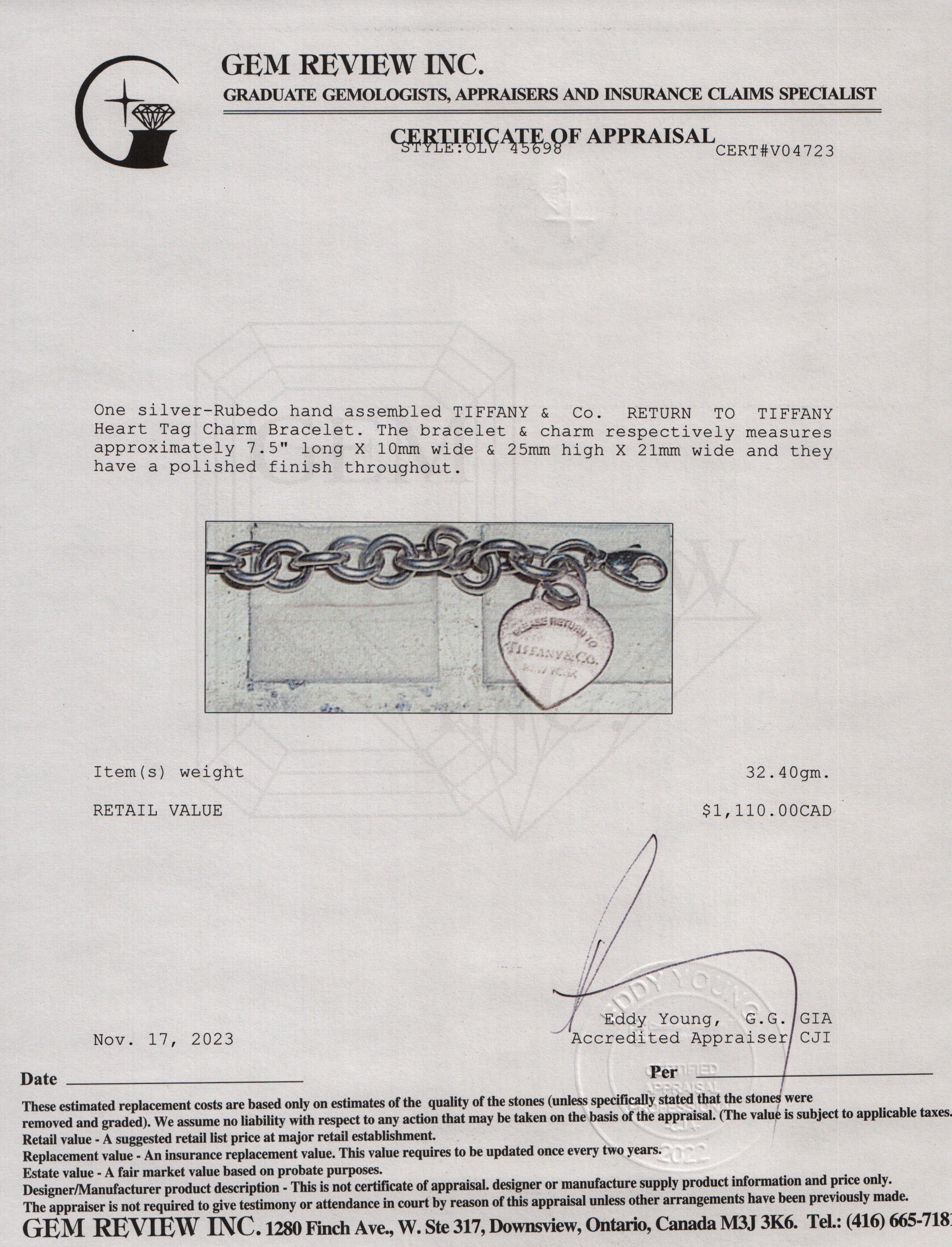 Sterling Silver & Rubedo Metal Return to Tiffany Heart Tag Charm Bracelet