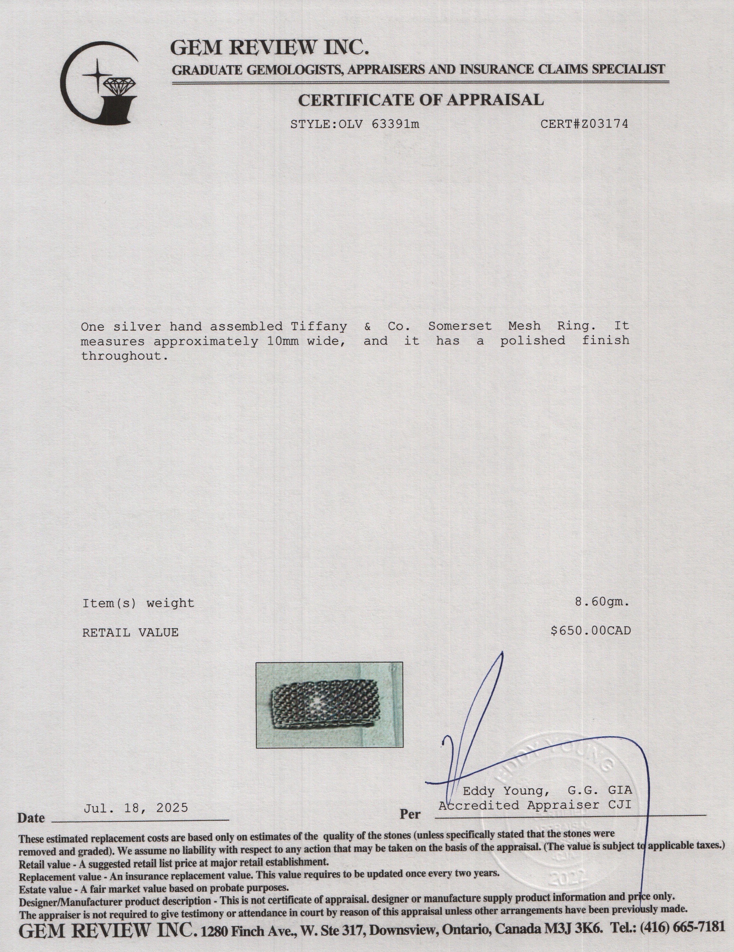 Sterling Silver Somerset Mesh Ring, Size 6.5