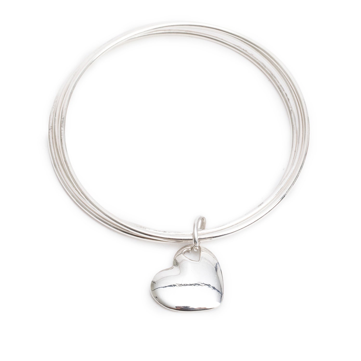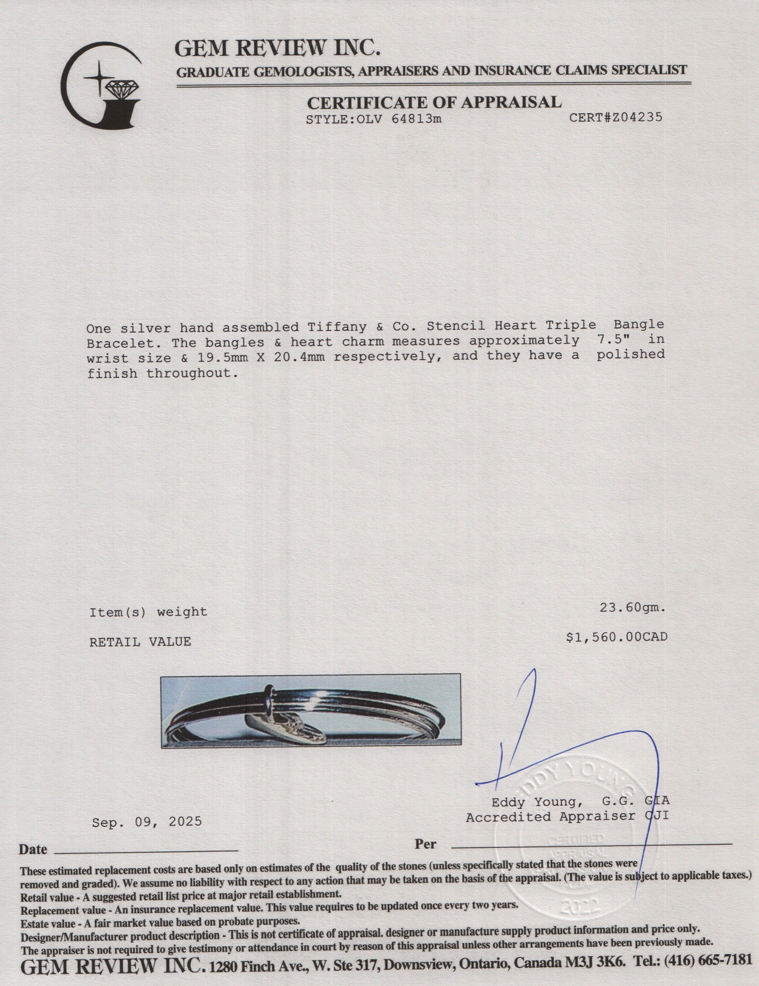 Sterling Silver Stencil Heart Triple Bangle Bracelet