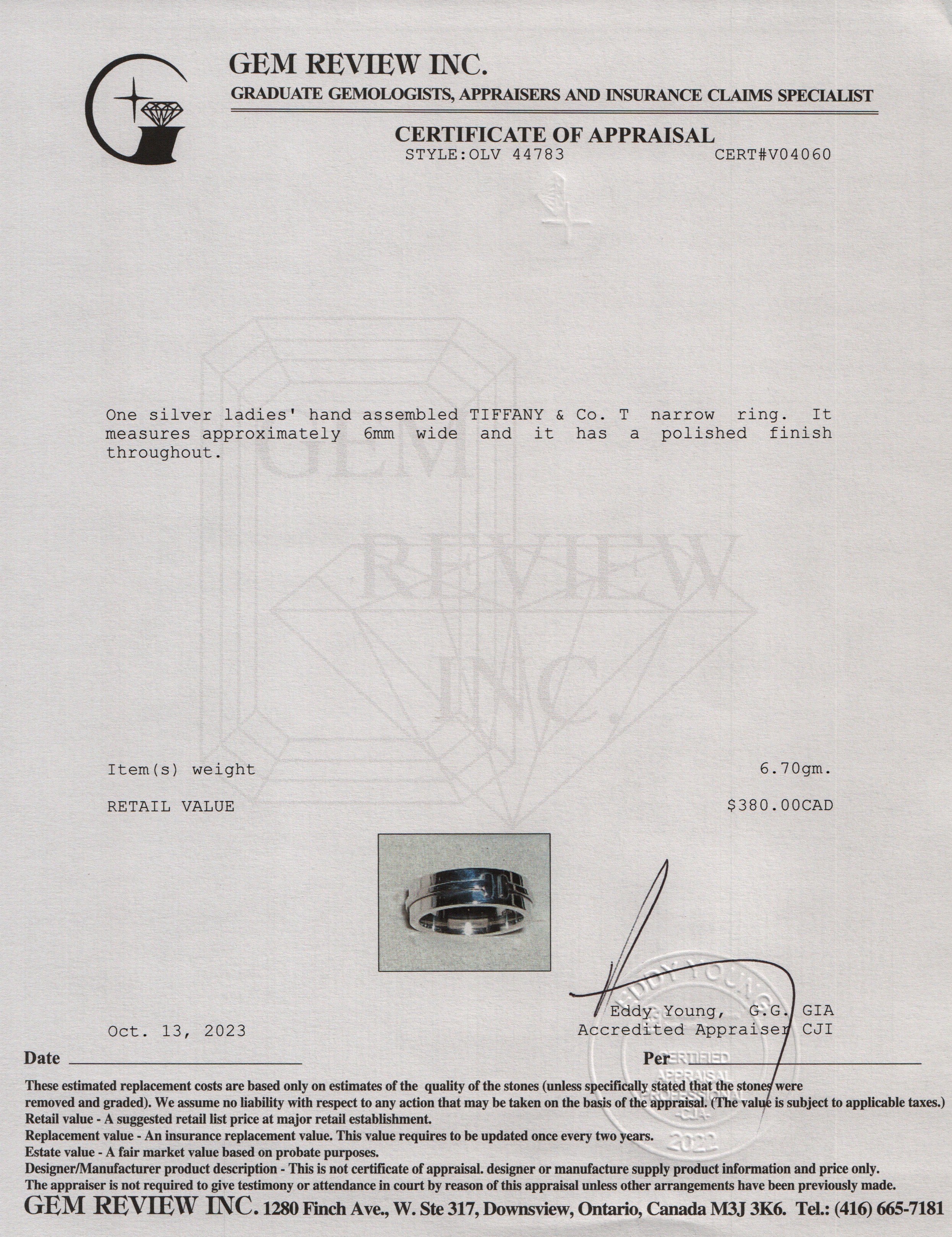 Sterling Silver T Narrow Band Ring, Size 5.75
