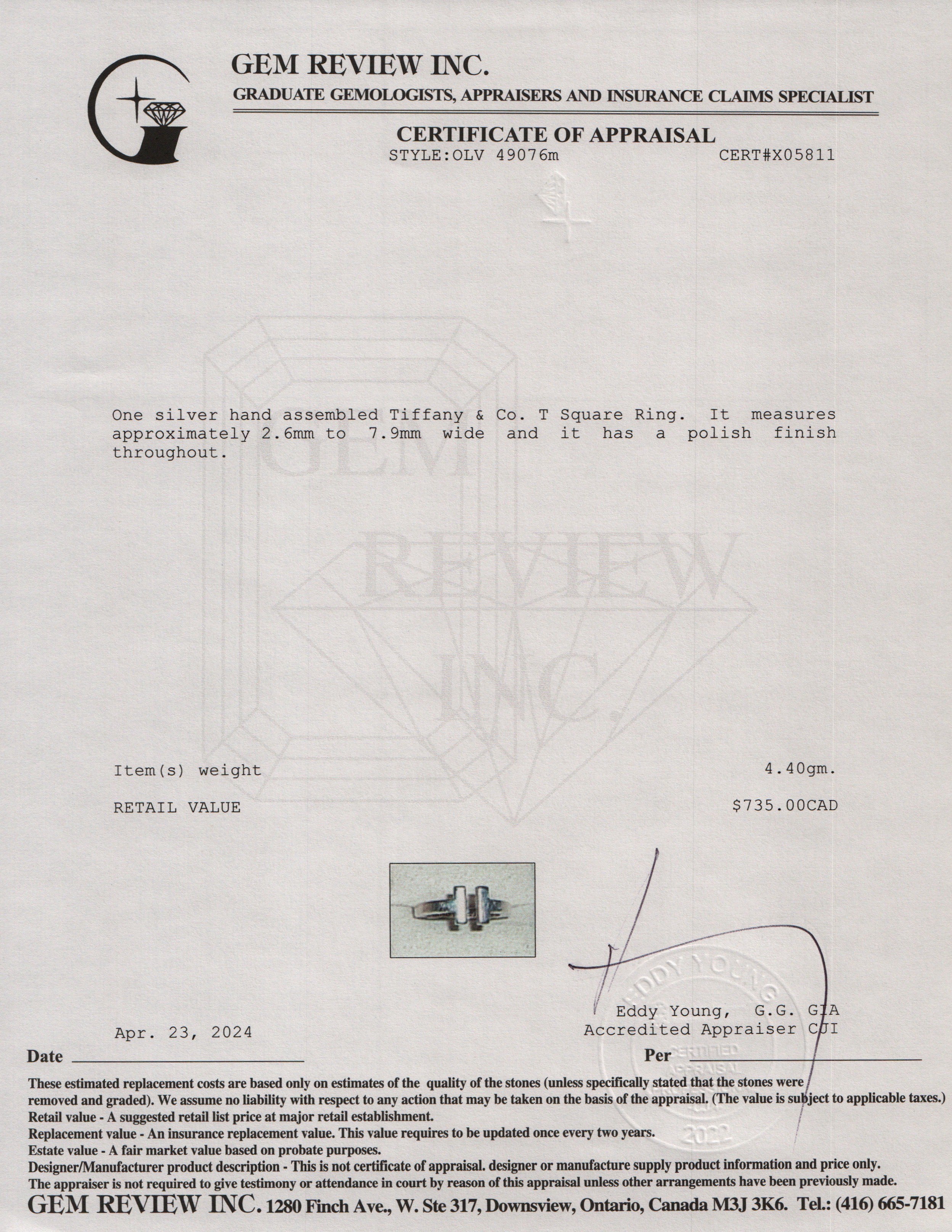 Sterling Silver T Square Ring, Size 6.5 w/ Box