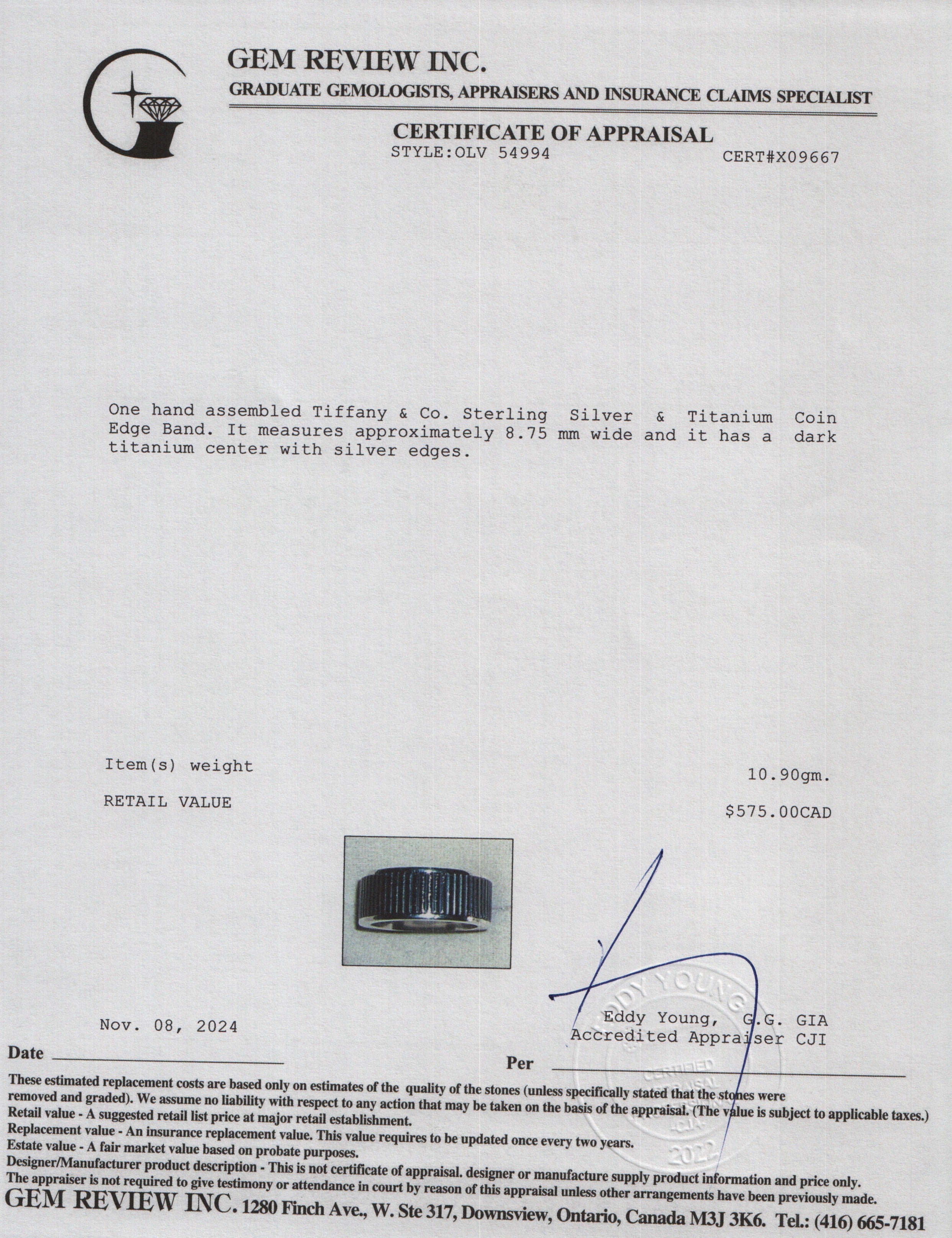 Sterling Silver & Titanium Coin Edge Band, Size 7.5