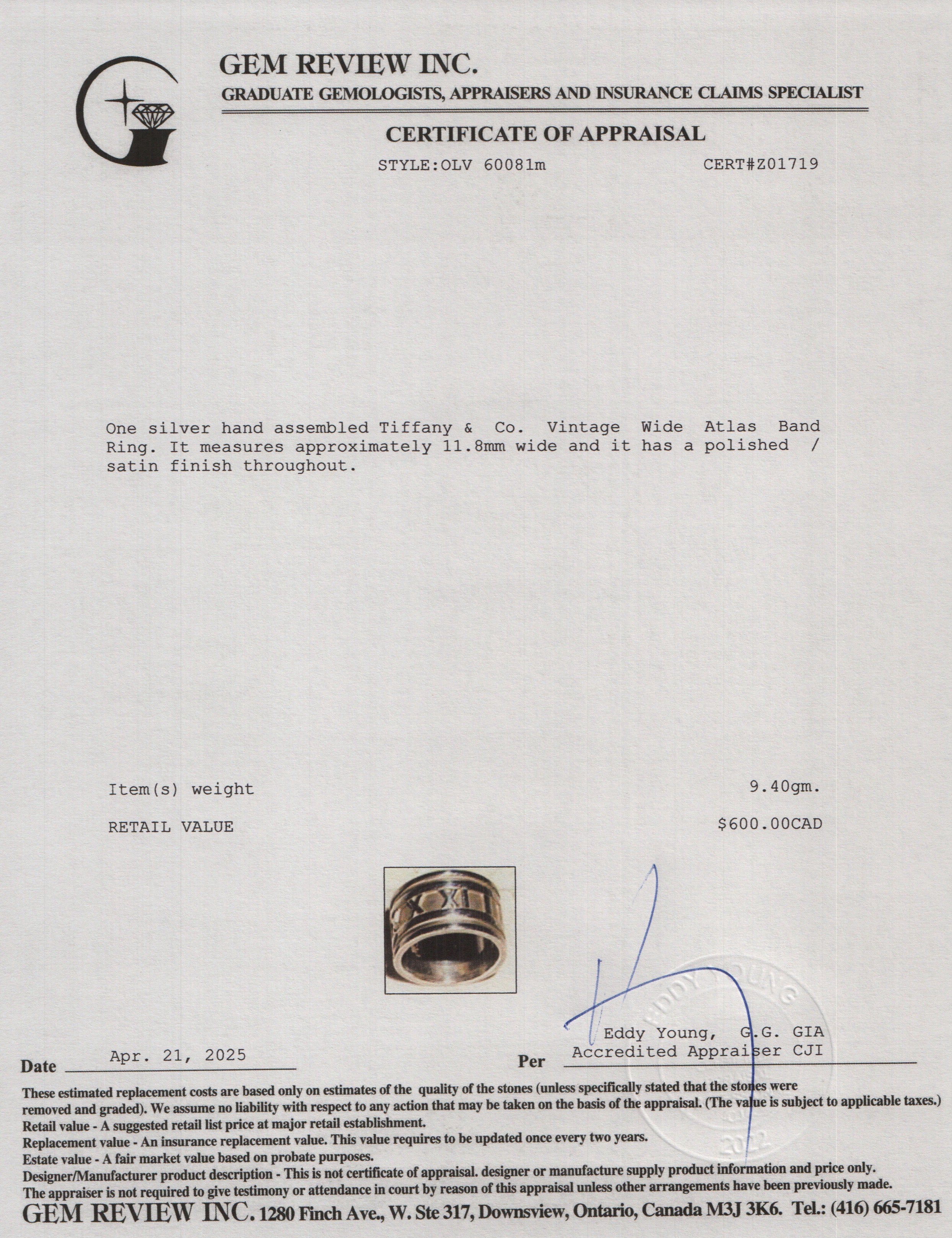 Sterling Silver Vintage Wide Atlas Band Ring, Size 7.5