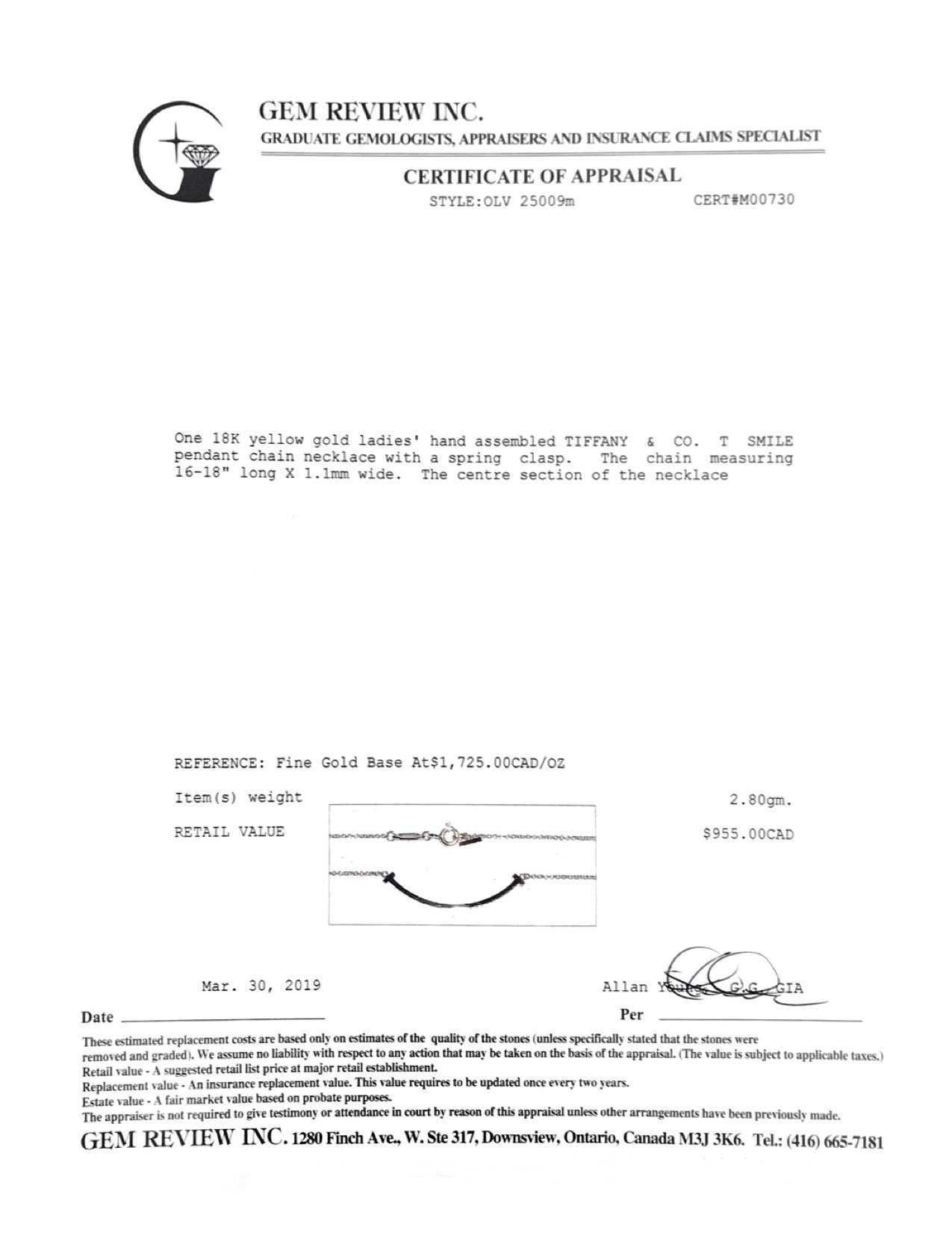 • Signature/Hallmarks: Tiffany & Co. AU750