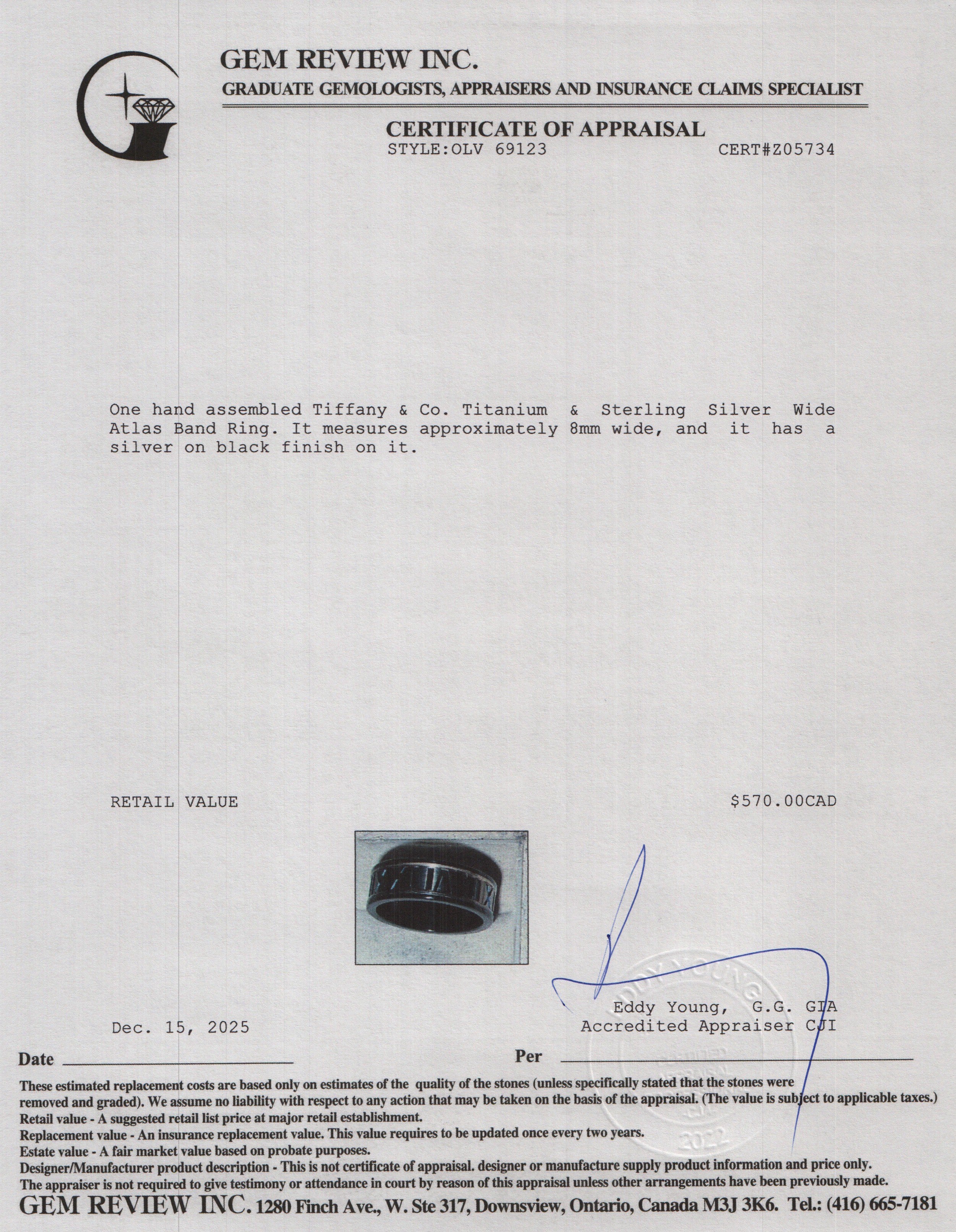 Titanium & Sterling Silver Wide Atlas Band Ring, Size 11