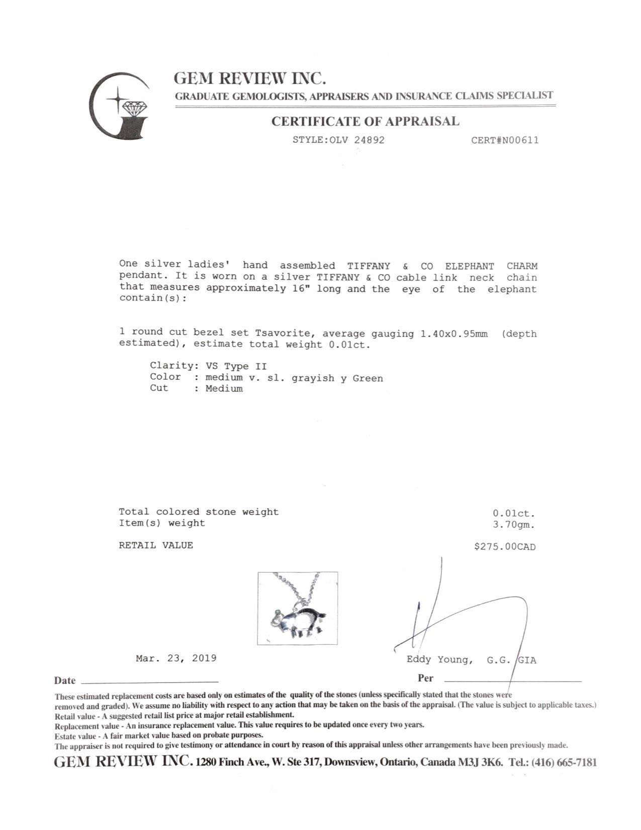 Tiffany & Co. Tsavorite Elephant Charm Necklace