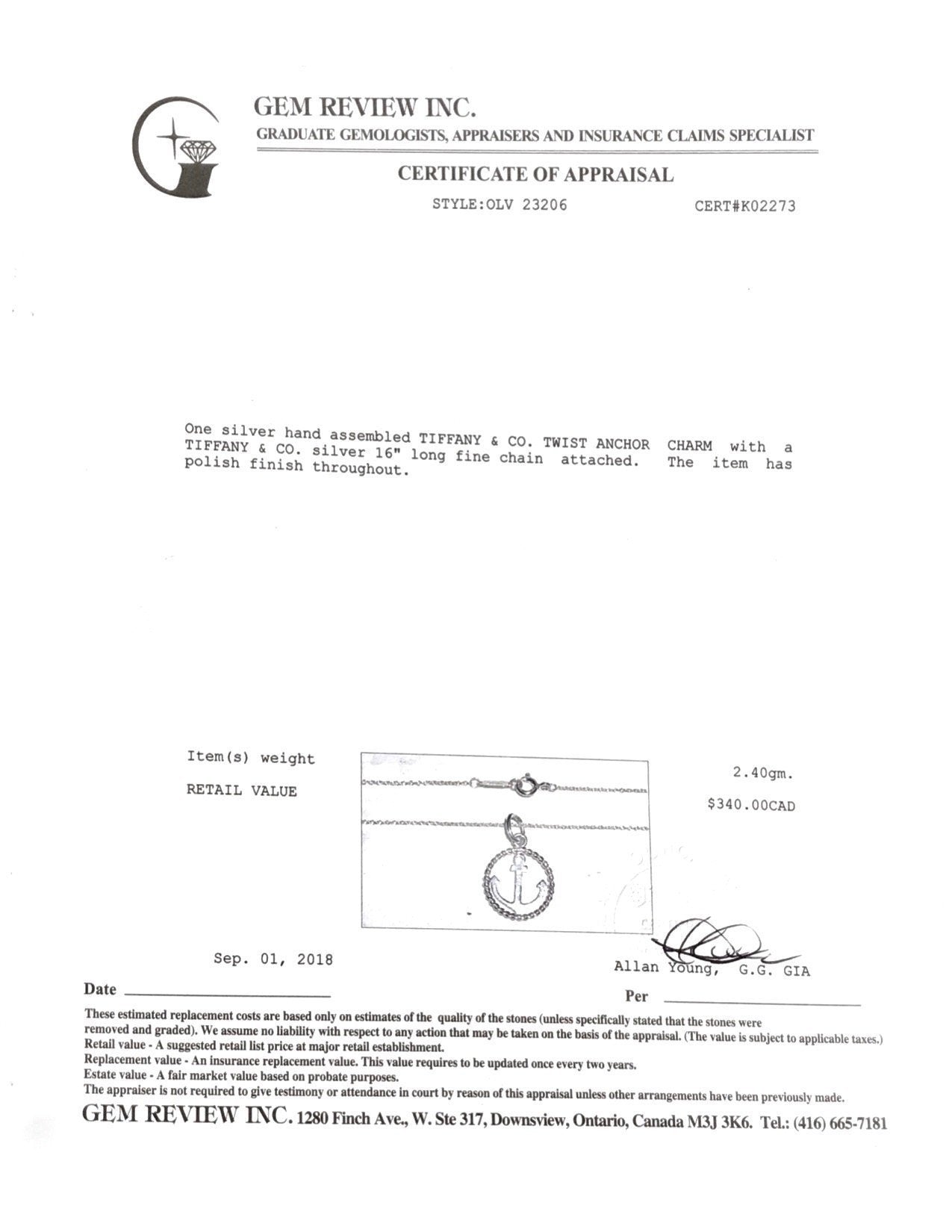Tiffany & Co. Twist Anchor Charm Pendant Necklace