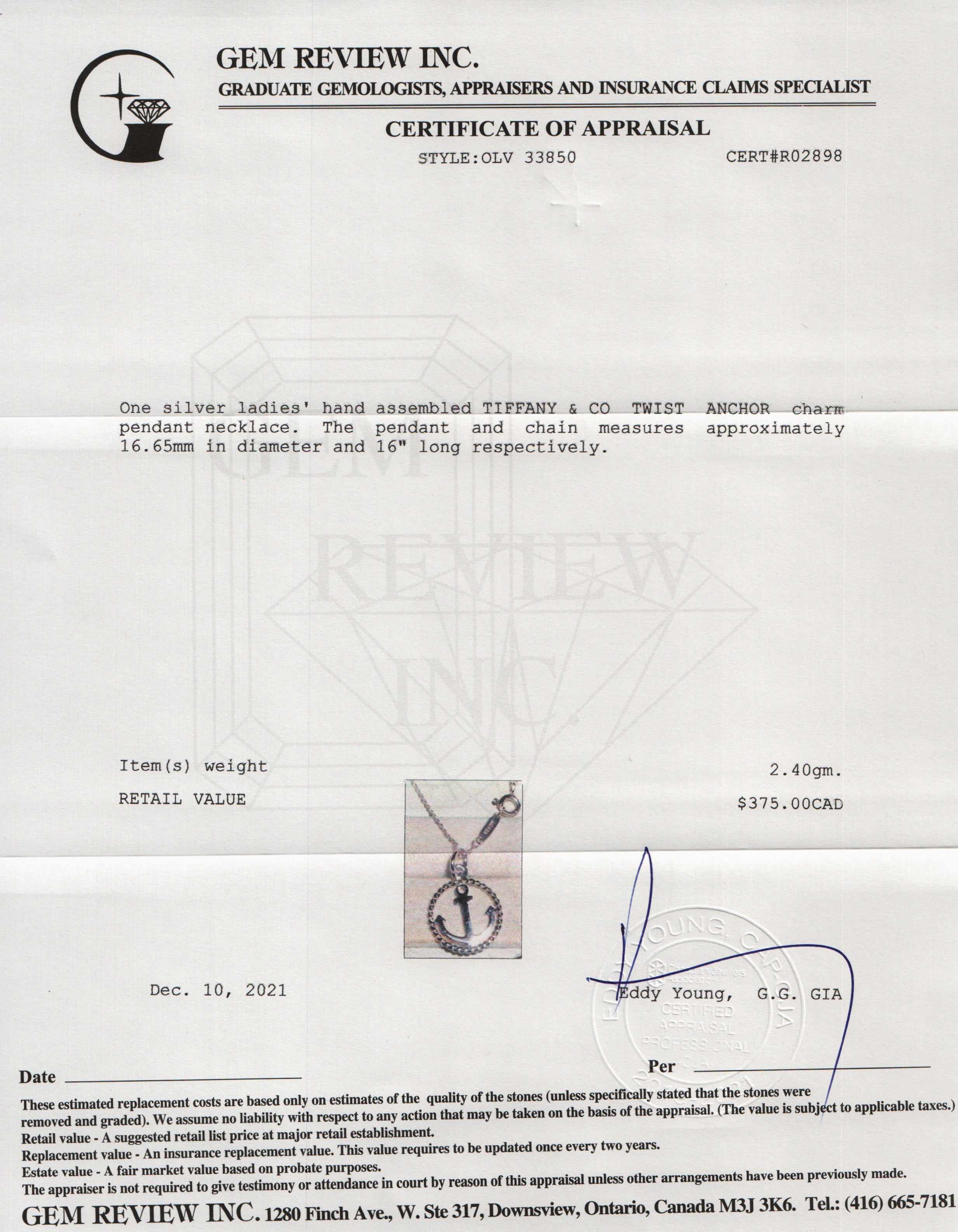 Tiffany & Co. Twist Anchor Charm Pendant Necklace