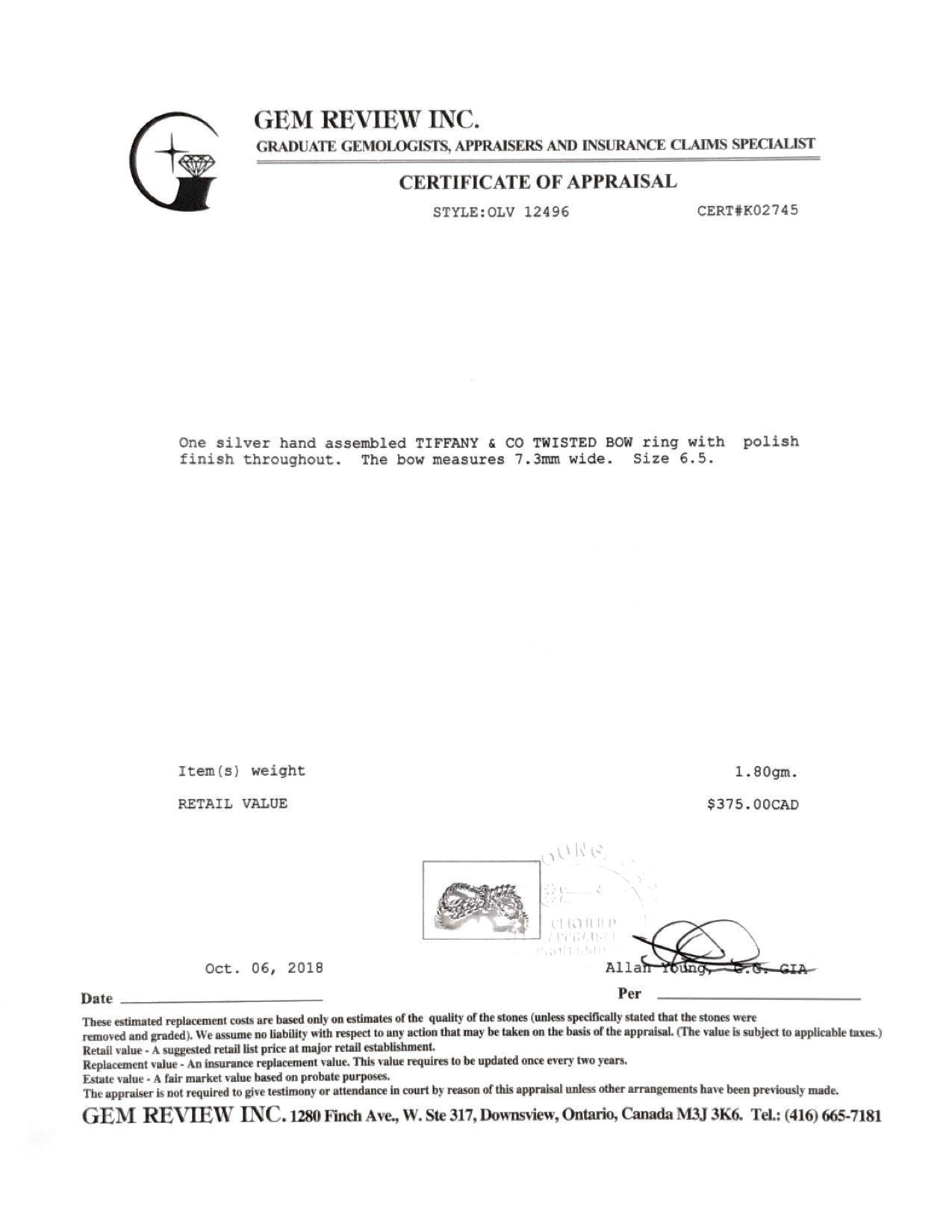Tiffany & Co. Twist Bow Ring in Sterling Silver; Size 6 1/2