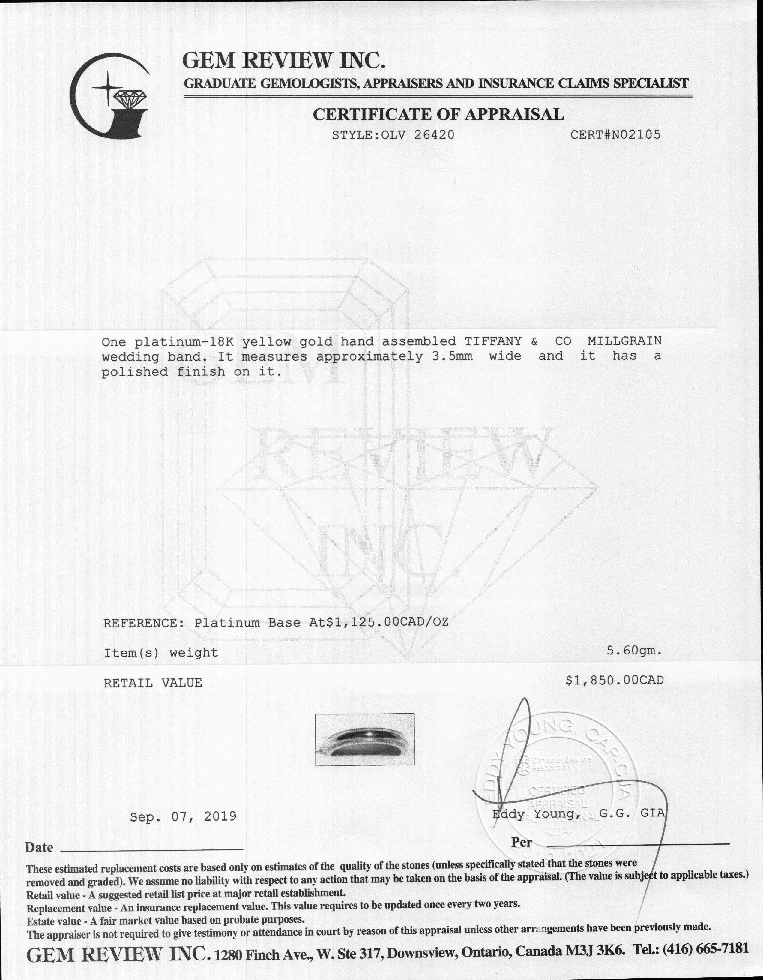 Tiffany & Co. Two-Tone Classic Milgrain Wedding Band Ring