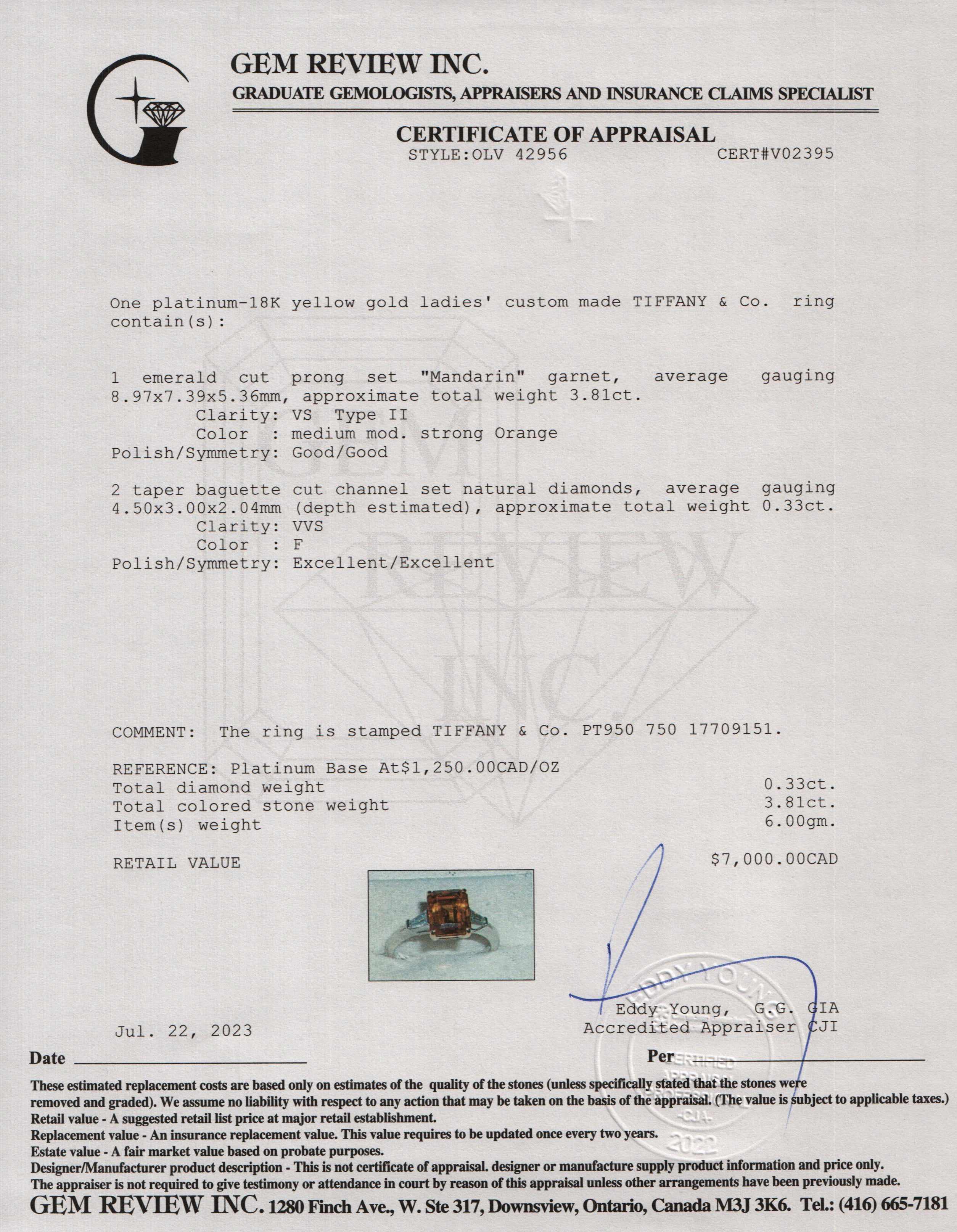 - 1 Emerald Cut Mandarin Garnet Weighing 3.81 ct.