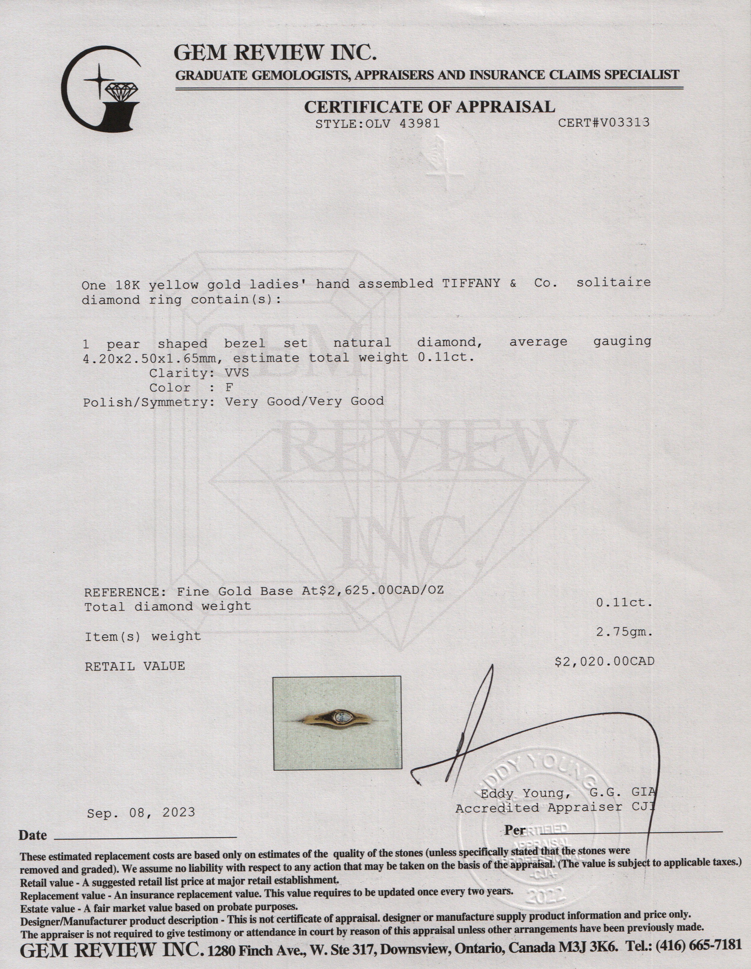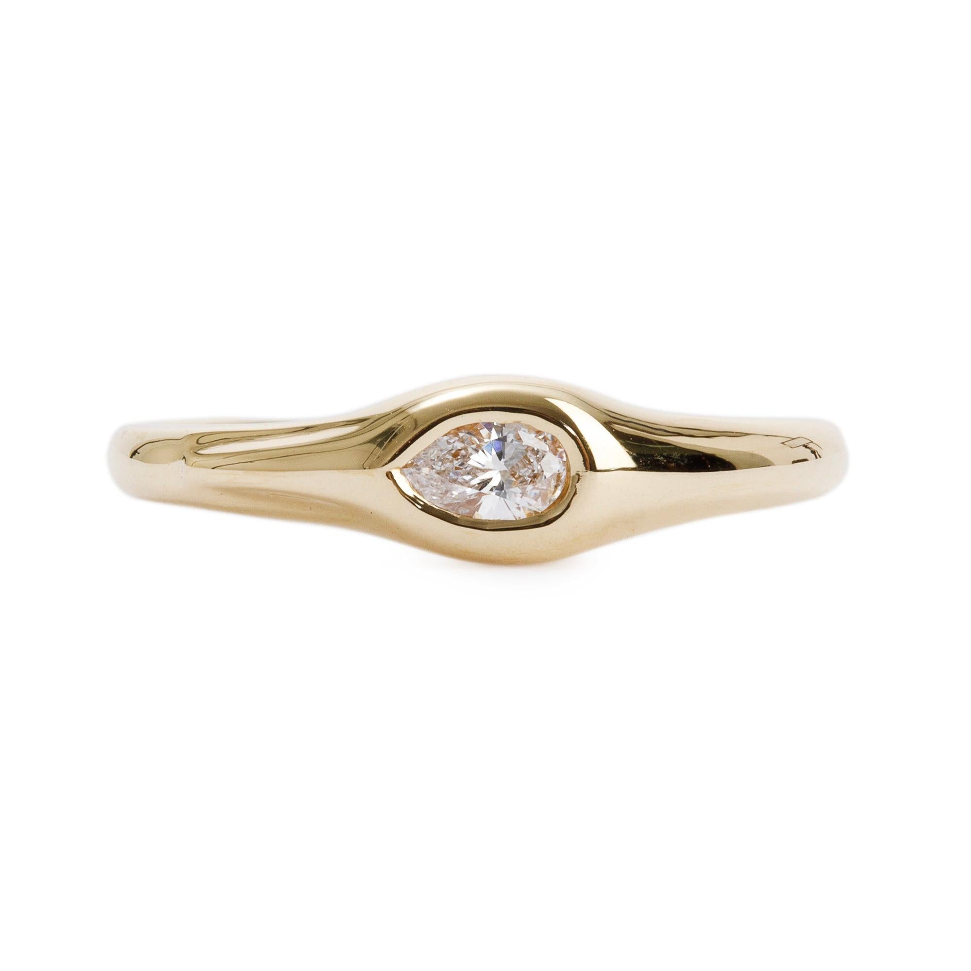Vintage 18k Yellow Gold Pear Shaped Diamond Ring