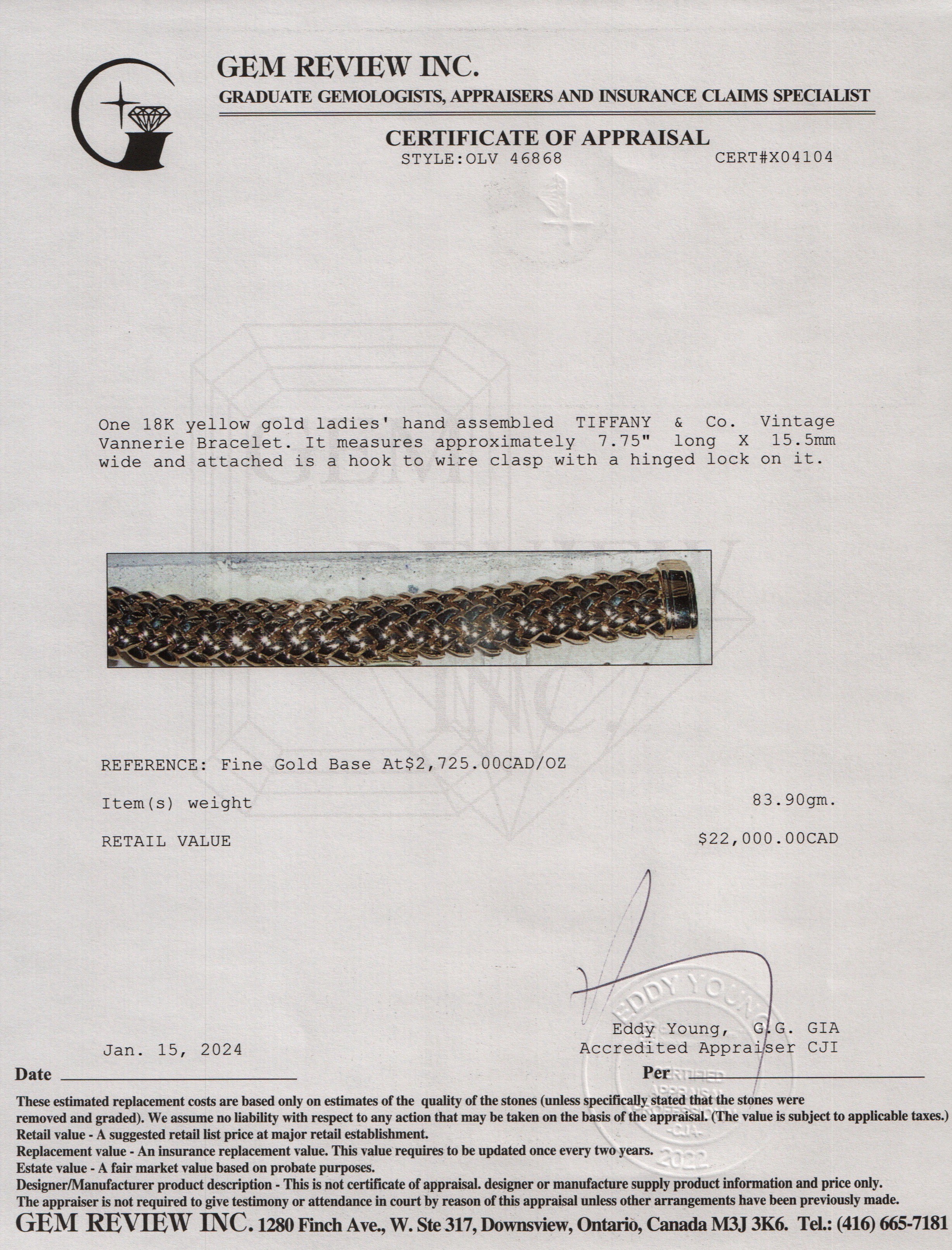 Vintage 18k Yellow Gold Vannerie Bracelet