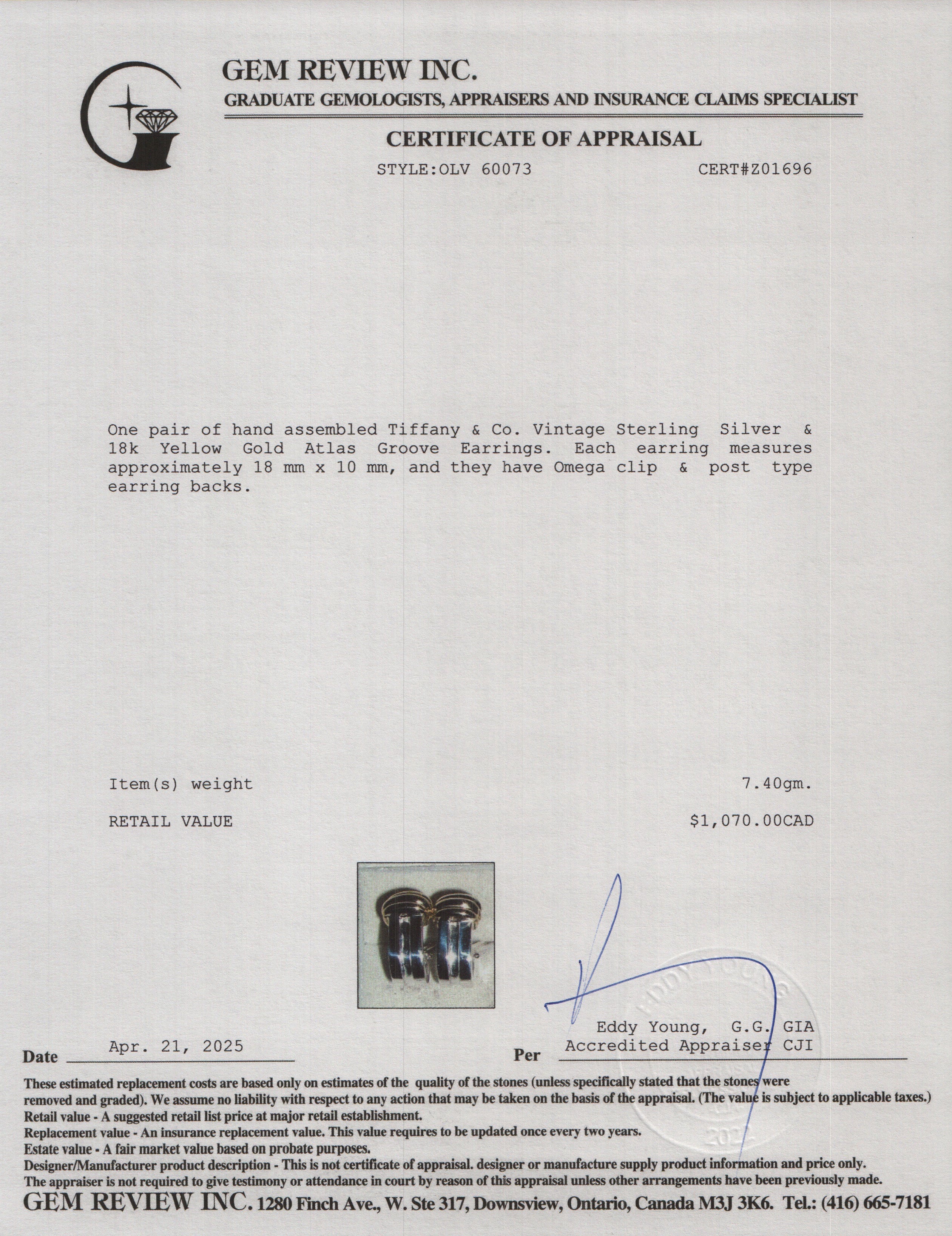 Vintage Sterling Silver & 18k Yellow Gold Atlas Groove Earrings