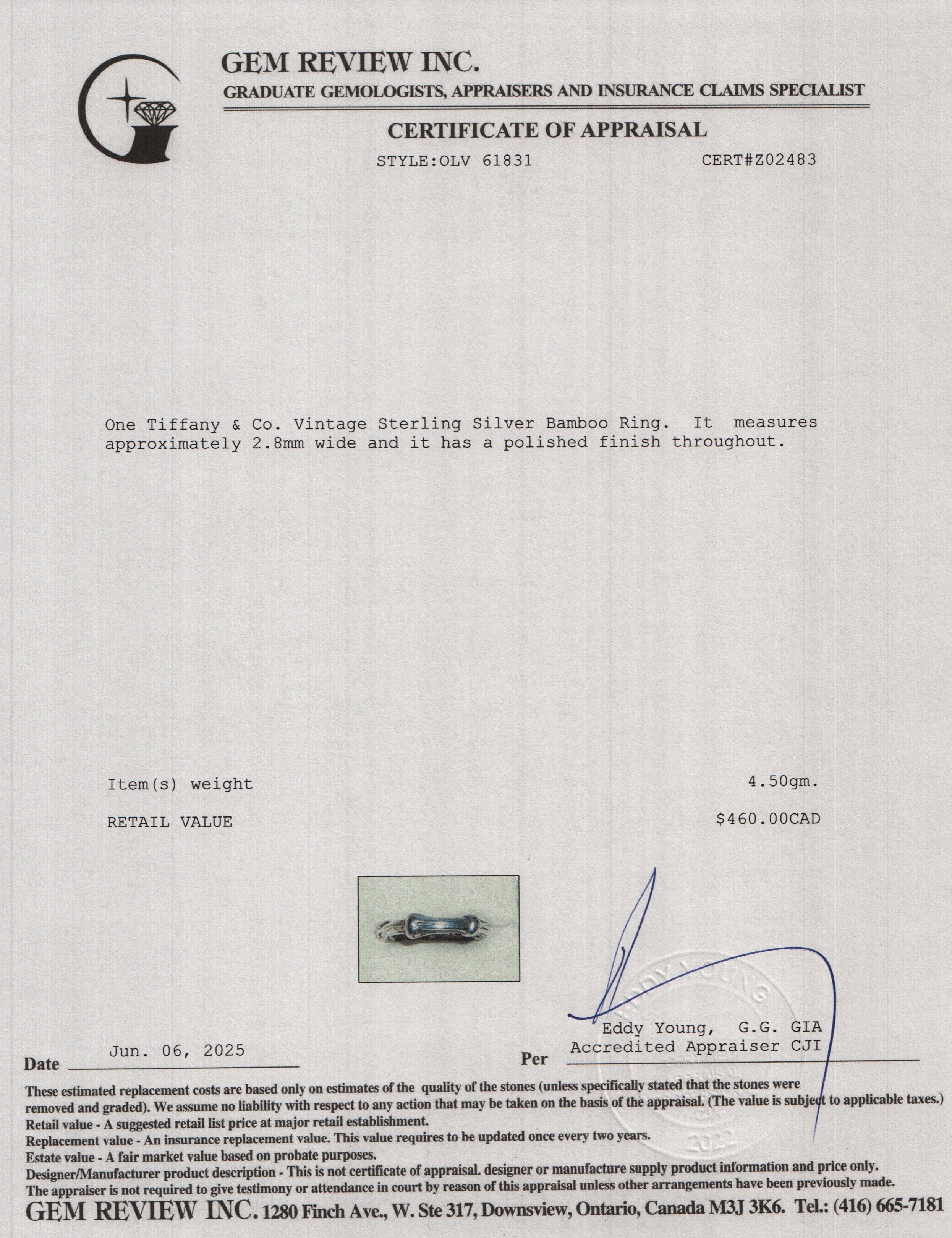Vintage Sterling Silver Bamboo Ring, Size 4