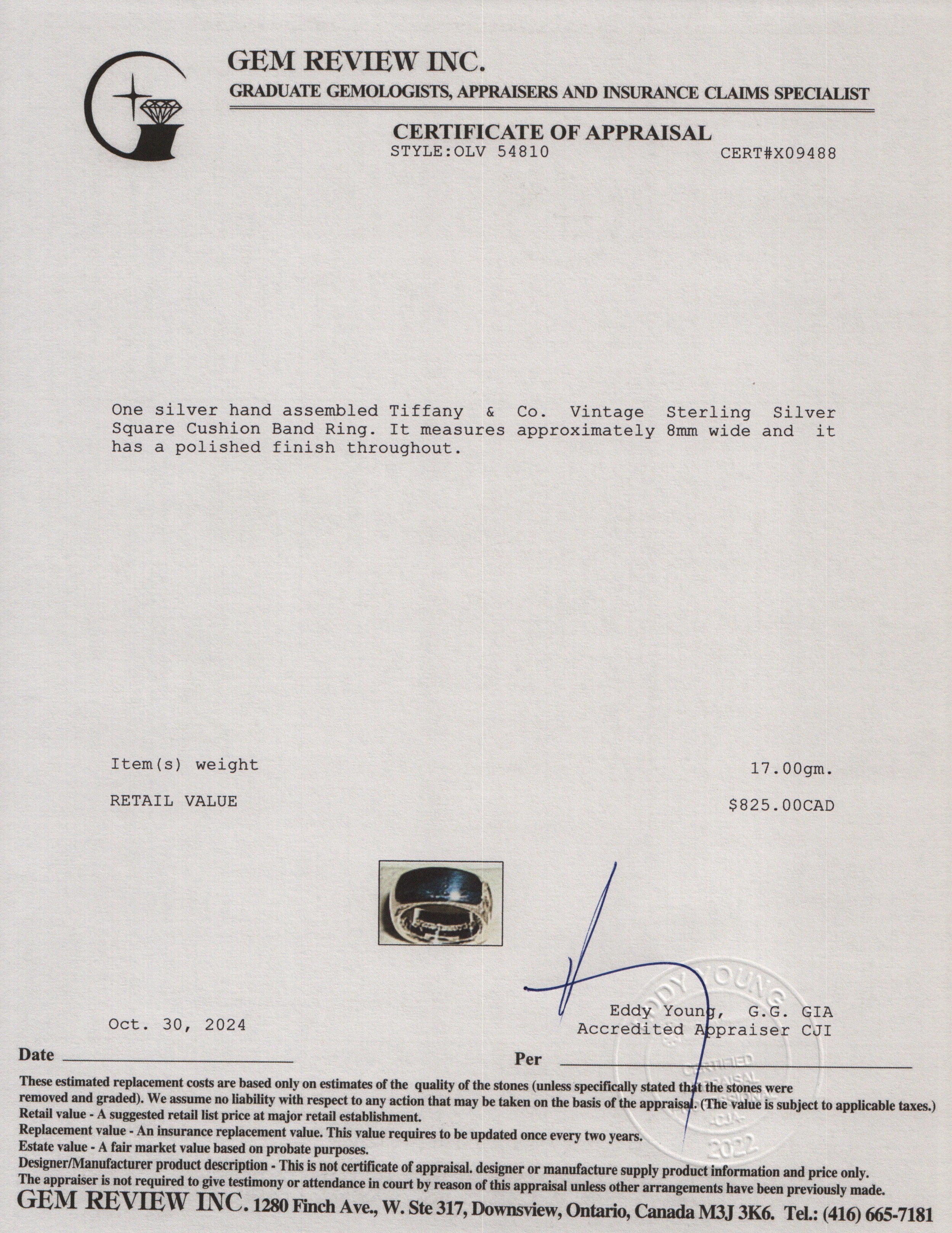 Vintage Sterling Silver Square Cushion Band Ring, Size 12