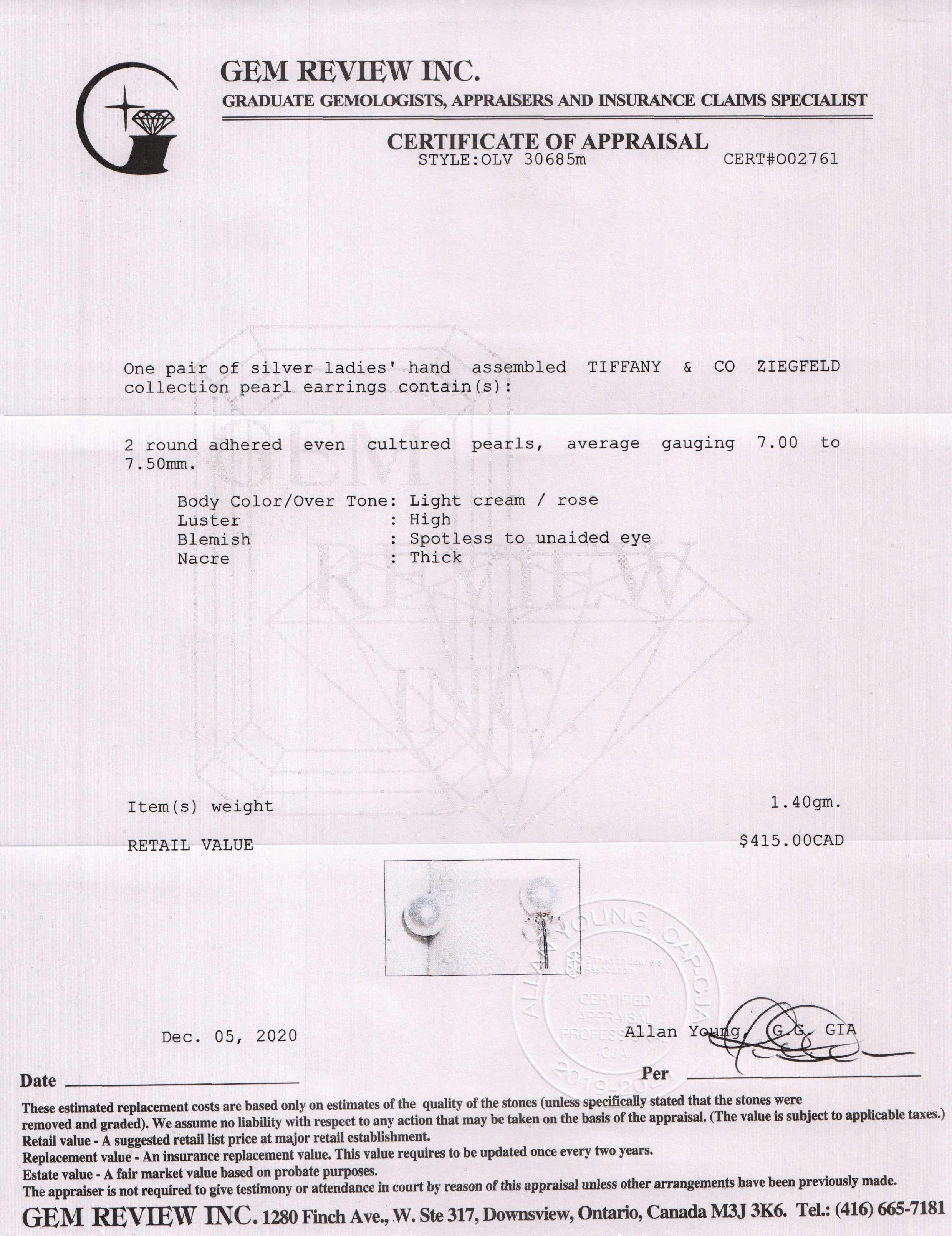 Tiffany & Co. Ziegfeld Collection Pearl Earrings