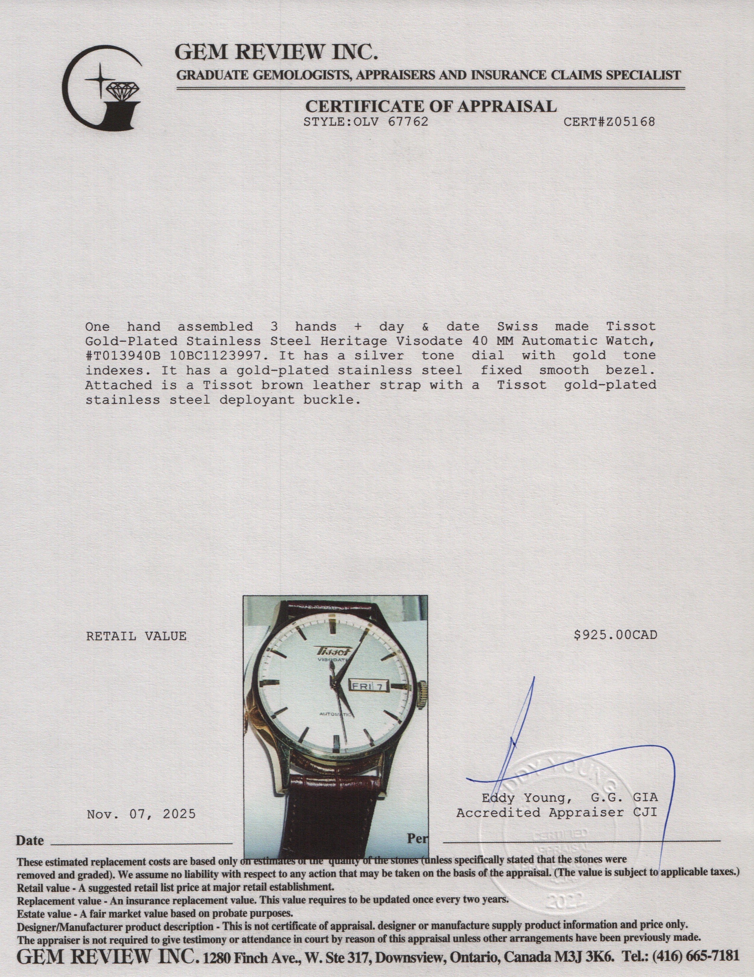 Gold-Plated Stainless Steel Heritage Visodate 40 MM Automatic Watch w/ Box & Papers
