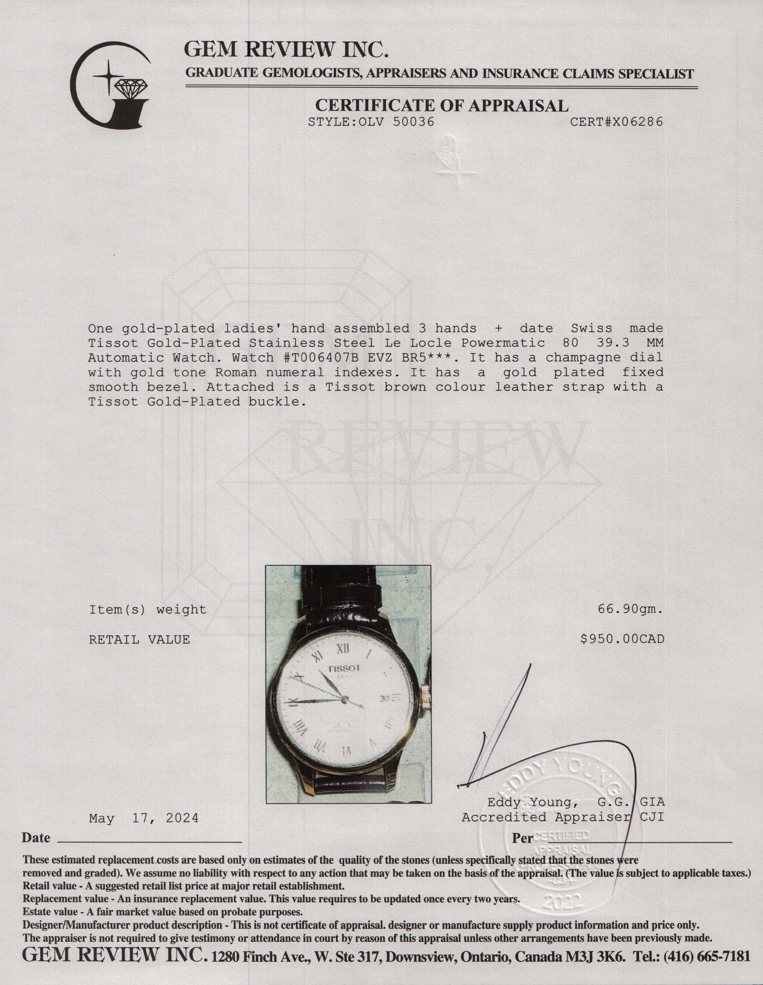 Gold-Plated Stainless Steel Le Locle Powermatic 80 39.3 MM Automatic Watch