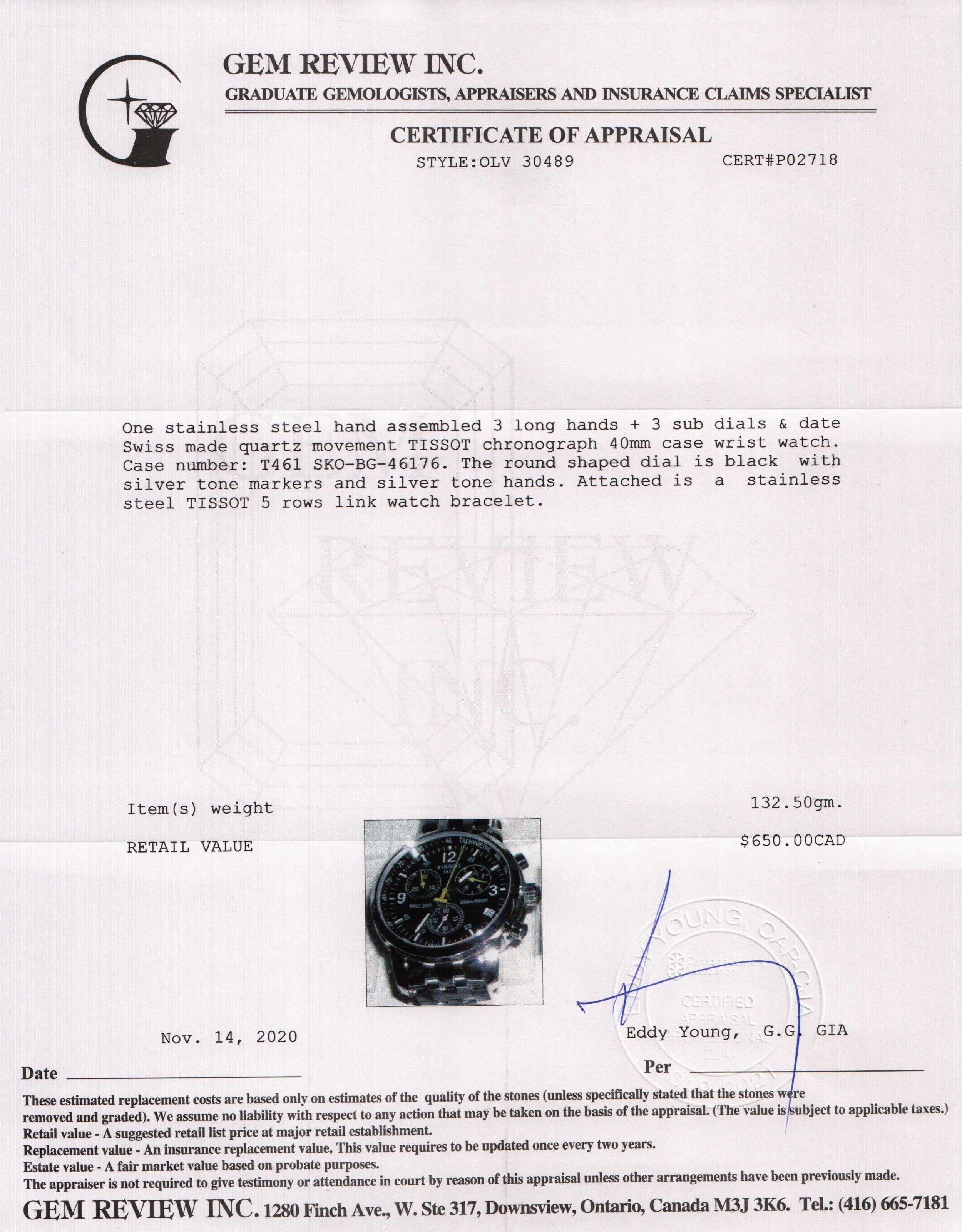 Included Items: Original Tissot Box, Booklet, Extra Links and Gem Review Appraisal