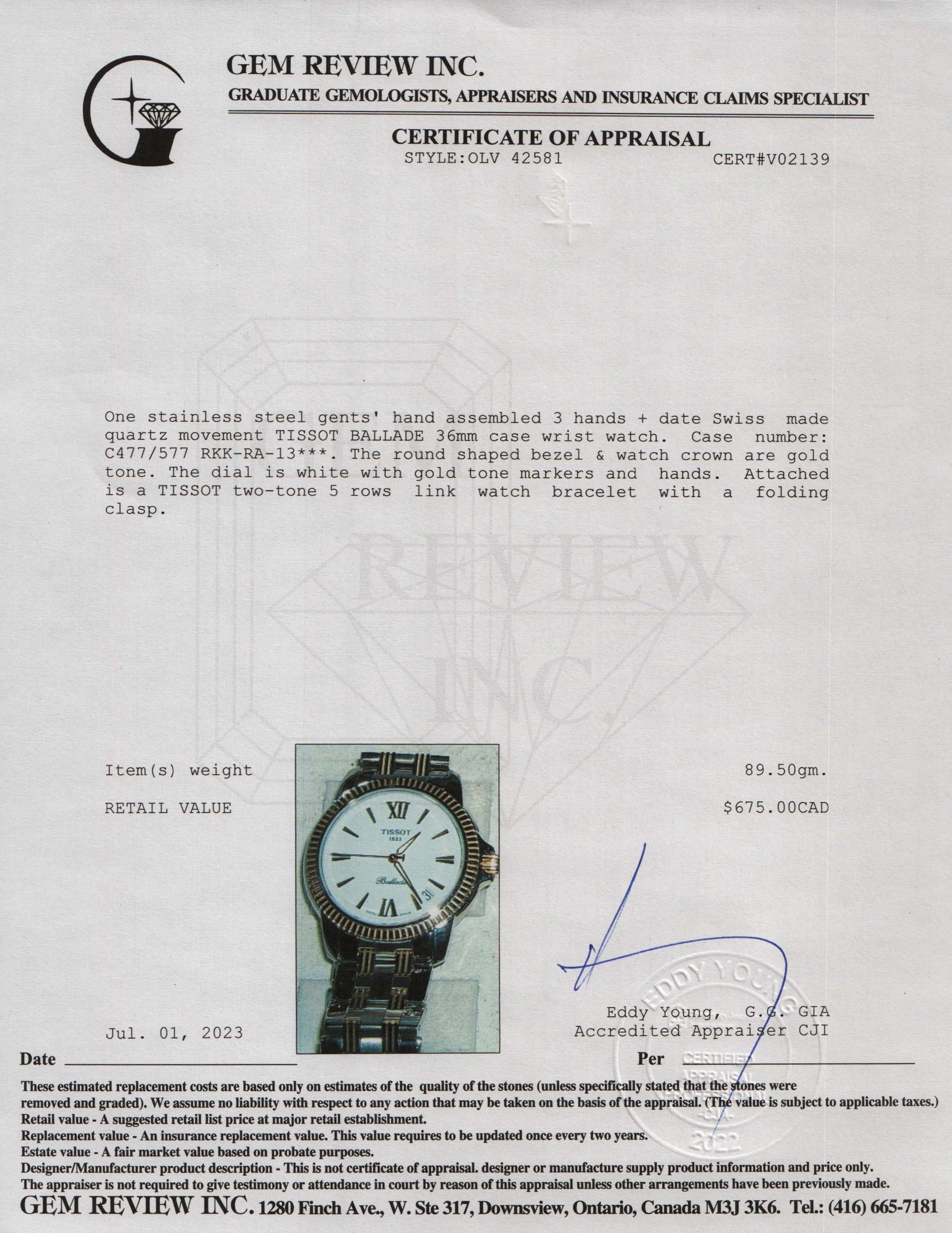 Included Items: Original Tissot Box & Booklet and Gem Review Appraisal