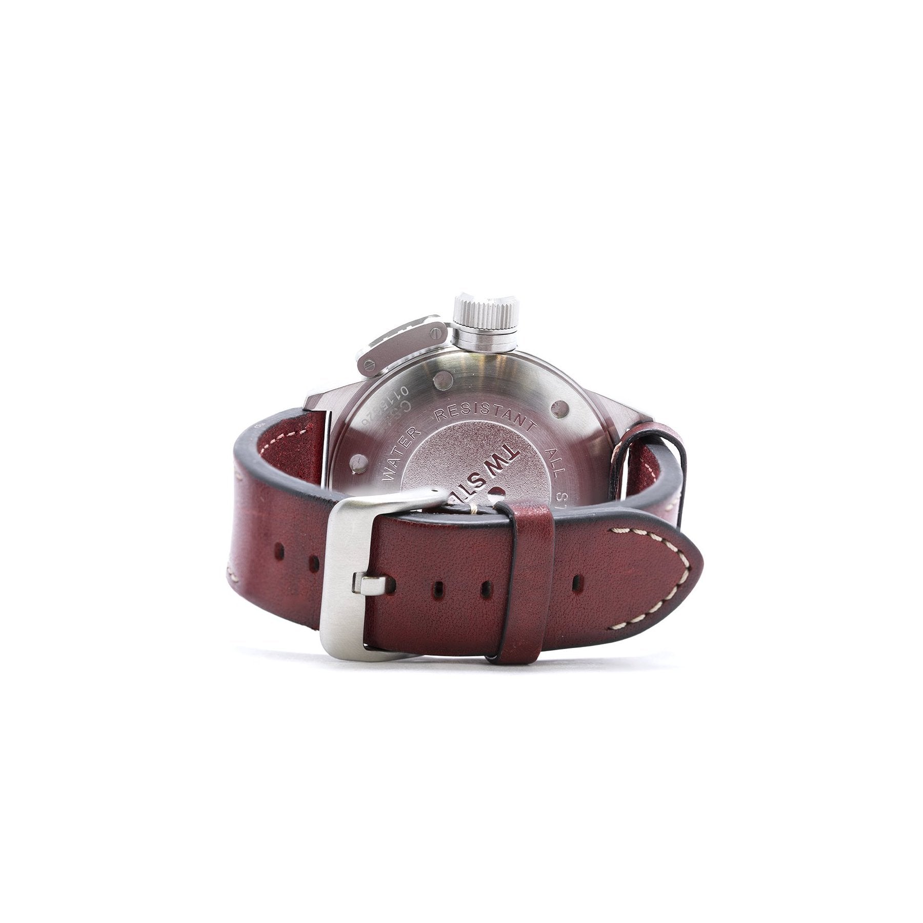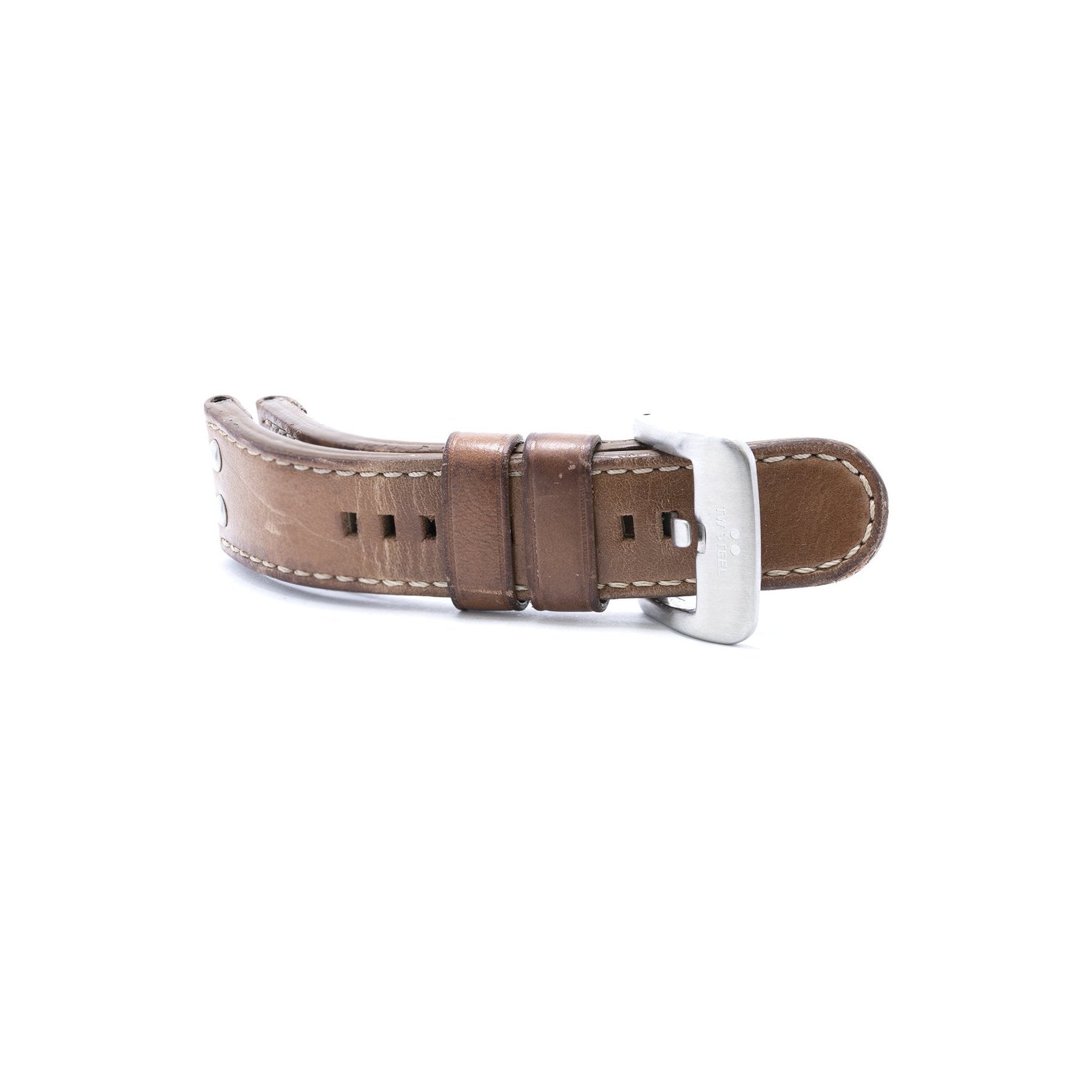 - Red & Brown Leather Straps with Tang Buckle Closure