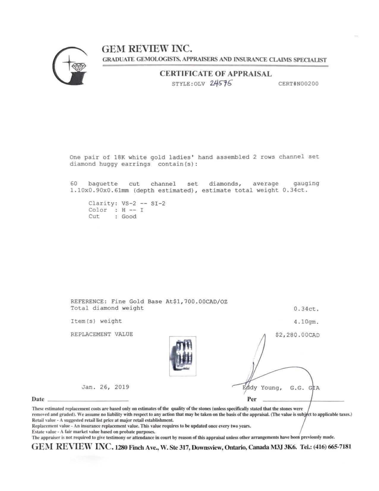 - 60 Baguette Cut Diamonds Totalling Approximately 0.34 ct. of VS2-SI2 Clarity, H-I Colour, Good Cut