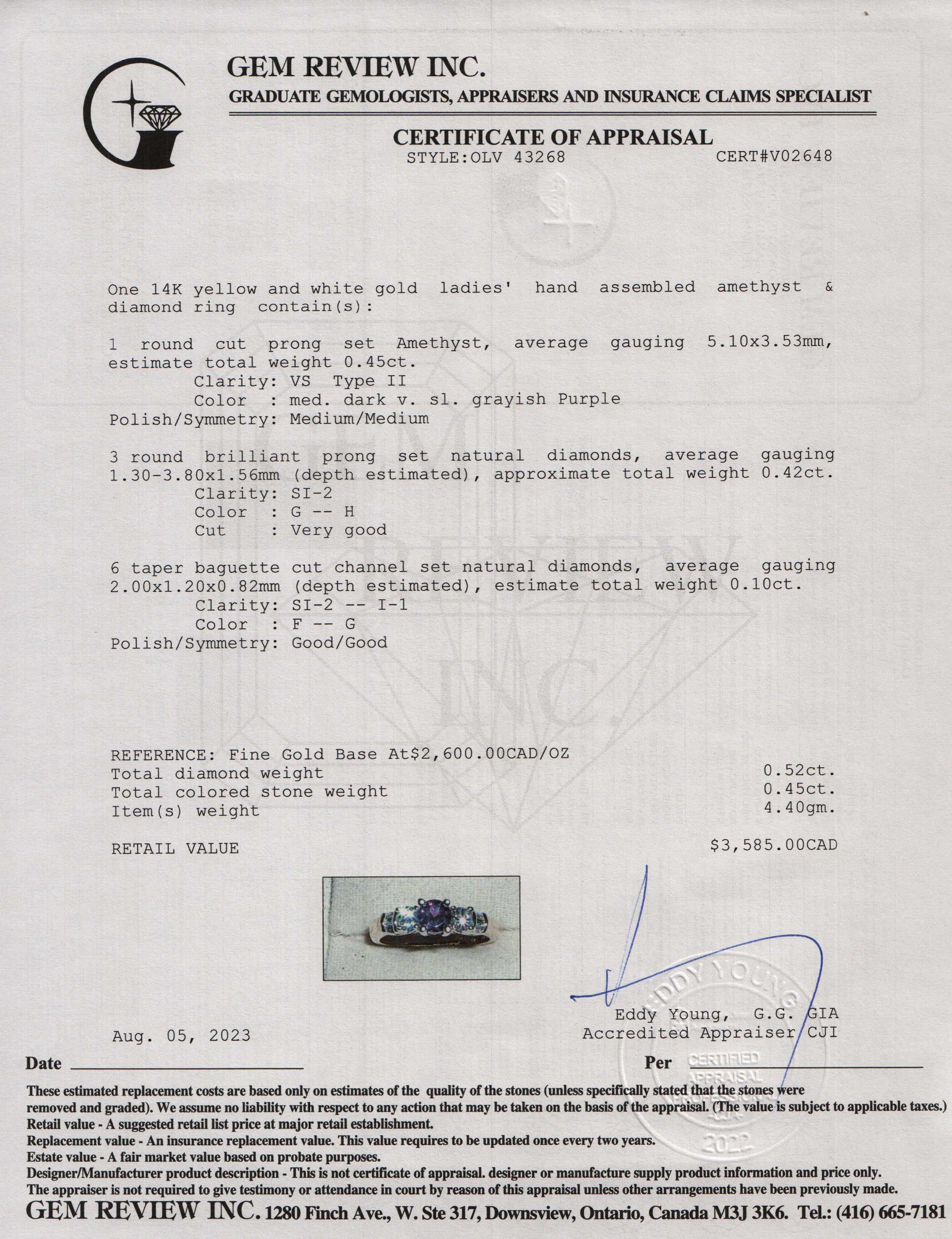 - 1 Round Cut Amethyst Weighing Approximately 0.45 ct.
