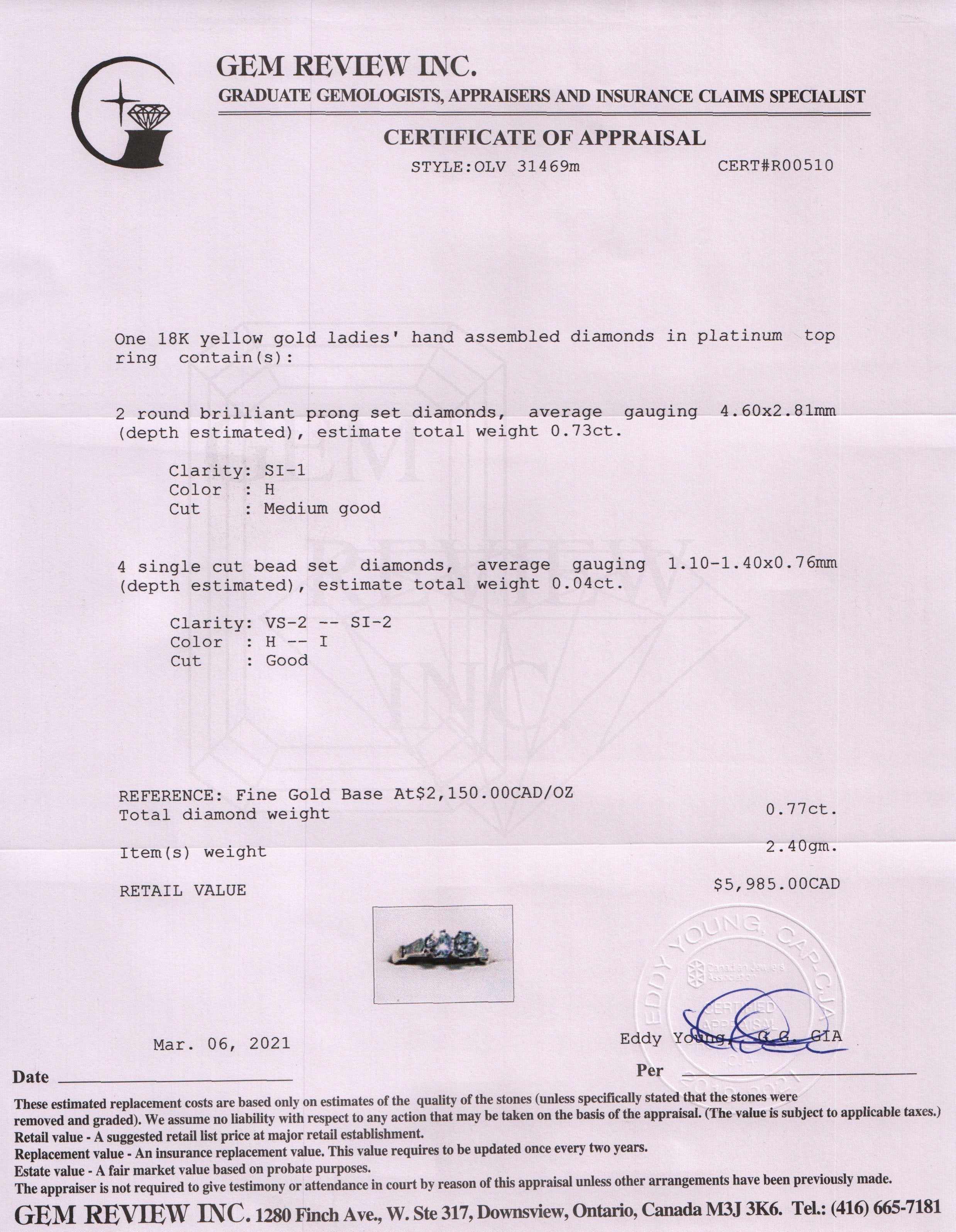 - 4 Single Cut Bead Set Diamonds Totalling Approximately 0.04 ct. of VS2-SI2 Clarity, H-I Colour, Good Cut