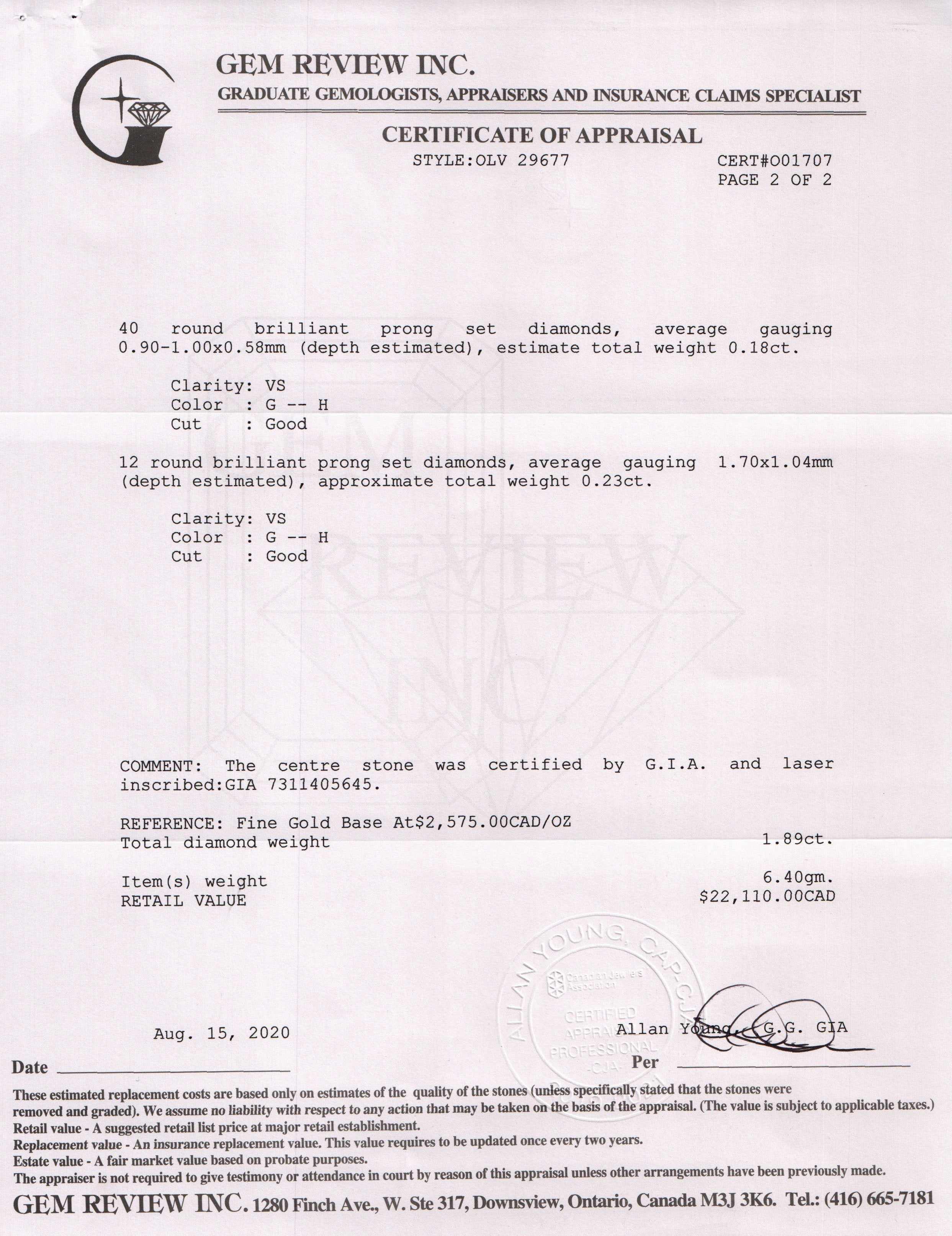 - Center Stone GIA Laser Inscribed: GIA 7311405645