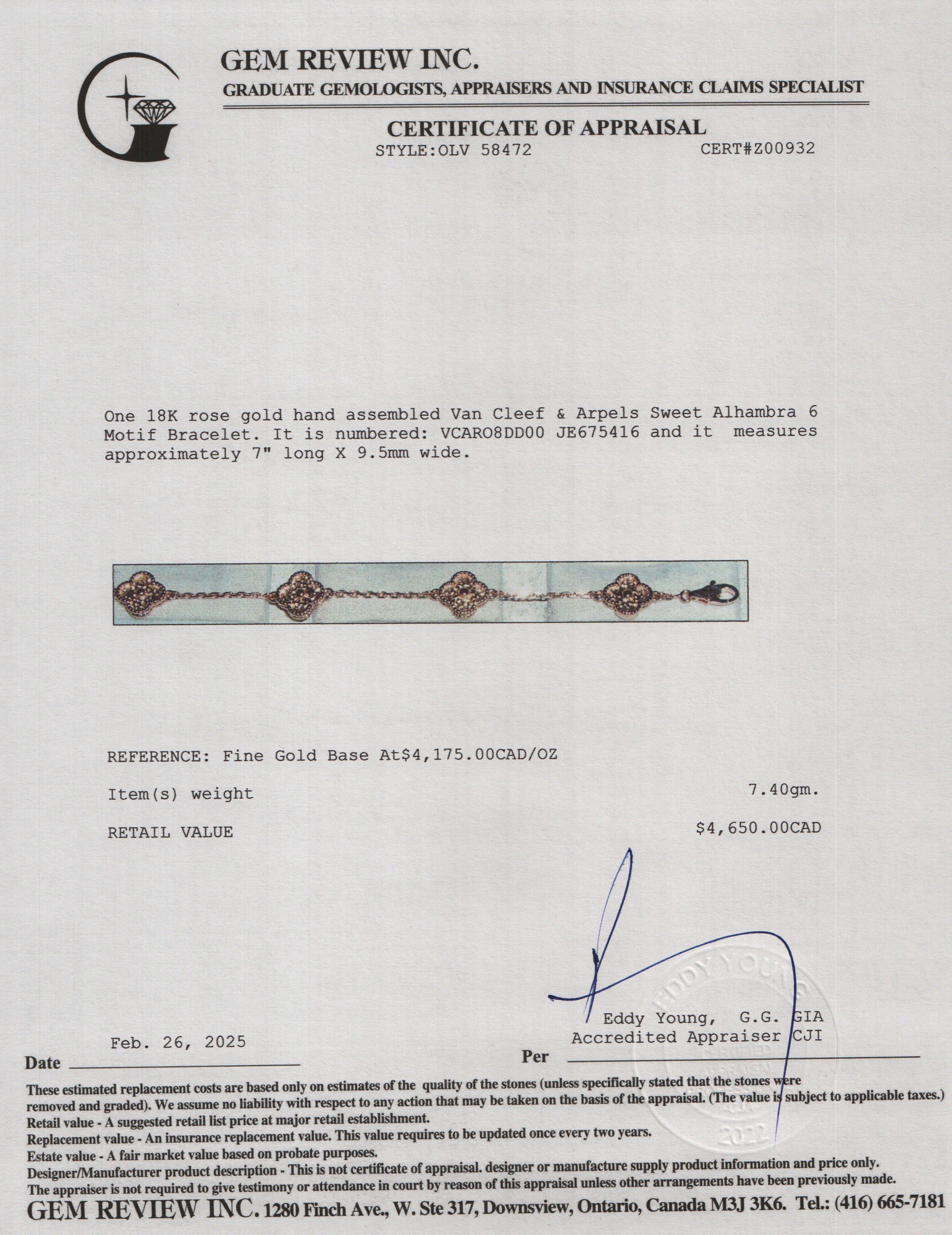 18k Rose Gold Sweet Alhambra 6 Motif Bracelet