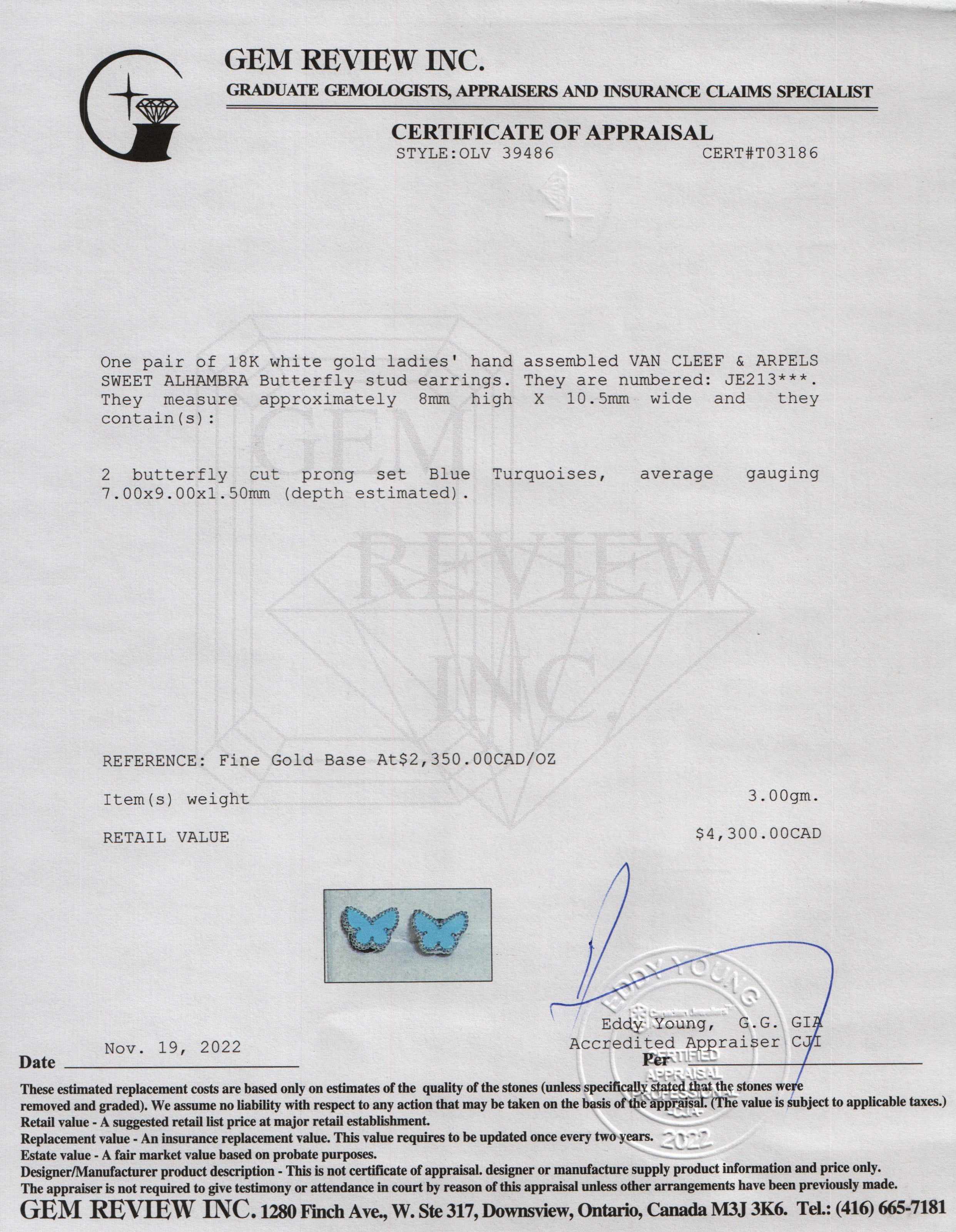 18k White Gold Sweet Alhambra Butterfly Stud Earrings w/ Box & Certificate