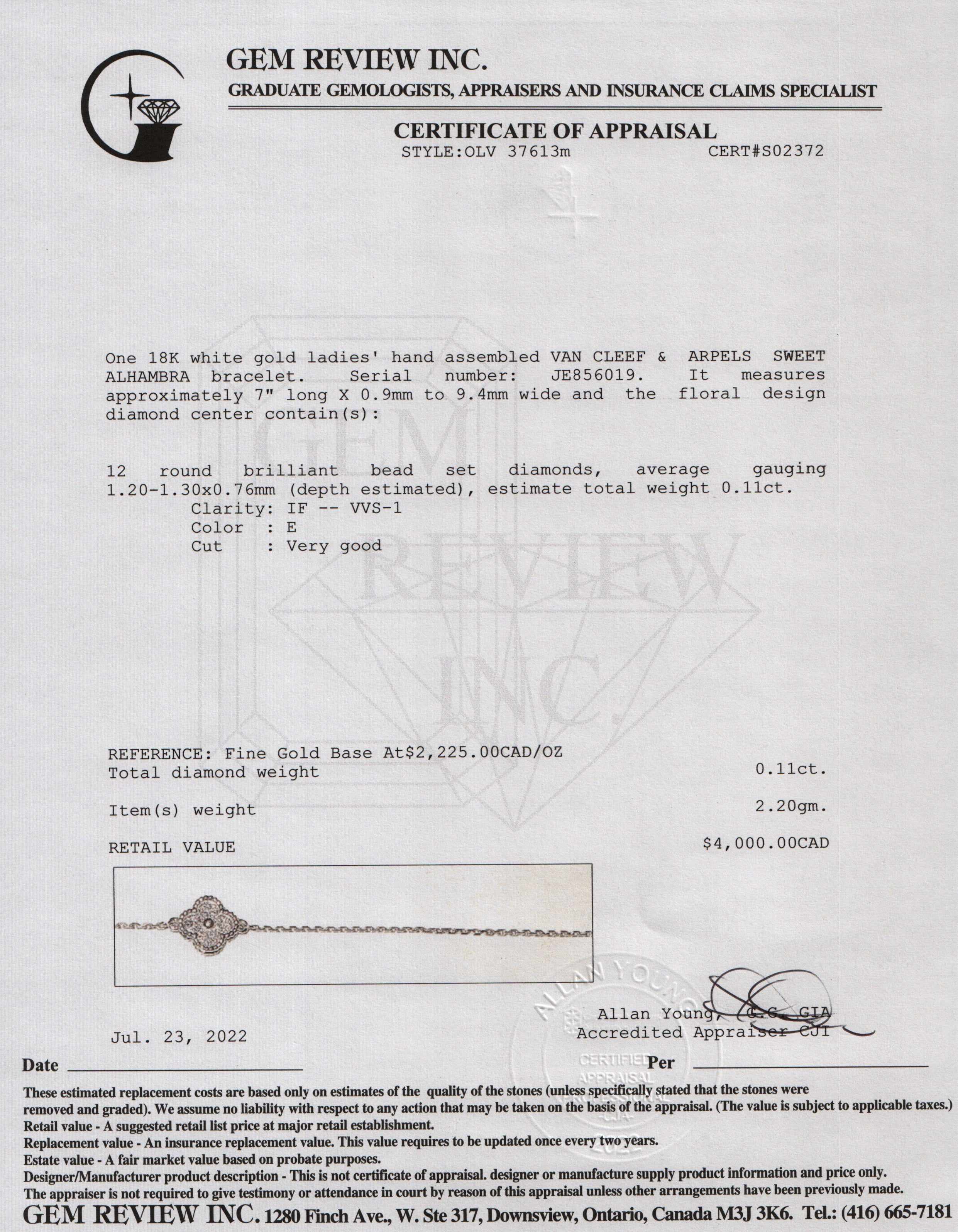 Included Items: Original Van Cleef & Arpels Box, Certificate, Booklet & Gem Review Appraisal