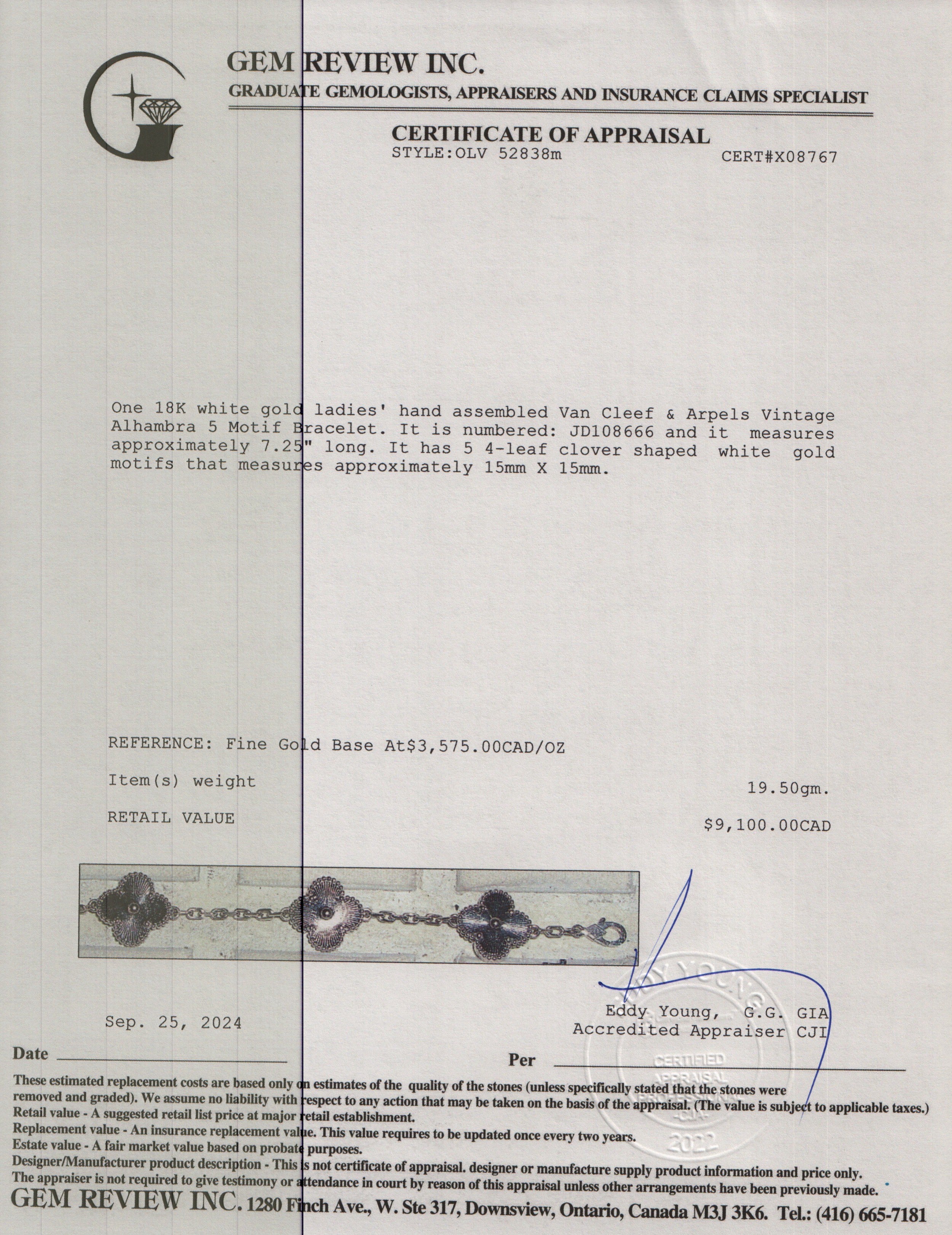 18k White Gold Vintage Alhambra 5 Motif Bracelet w/ Box