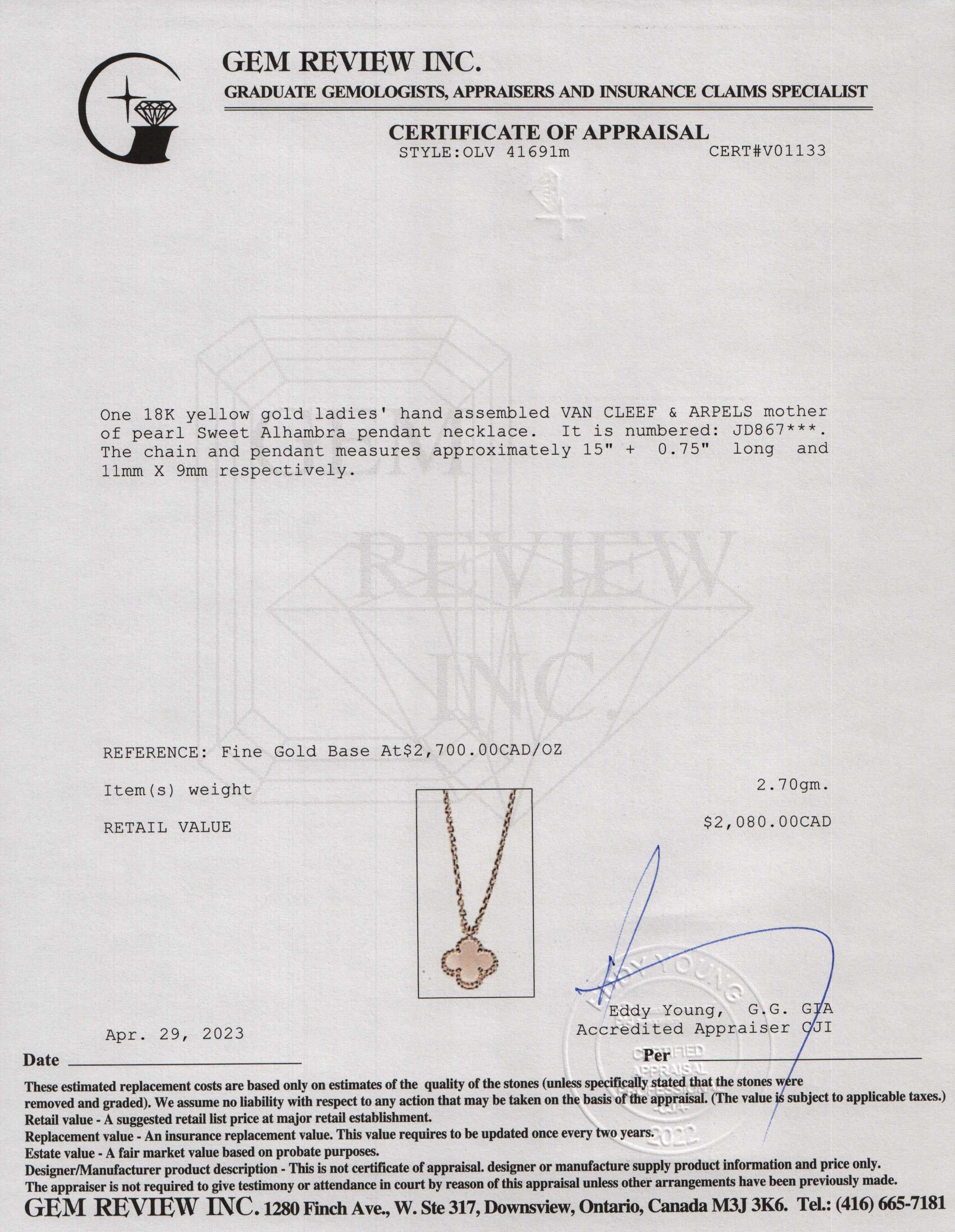 Included Items: Original Van Cleef Box and Gem Review Appraisal