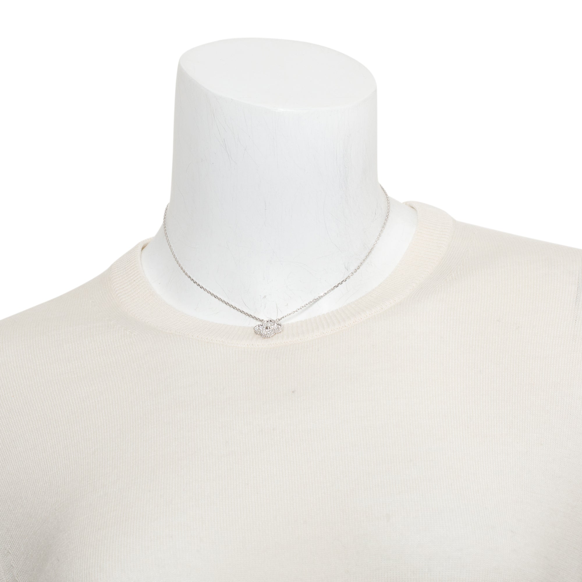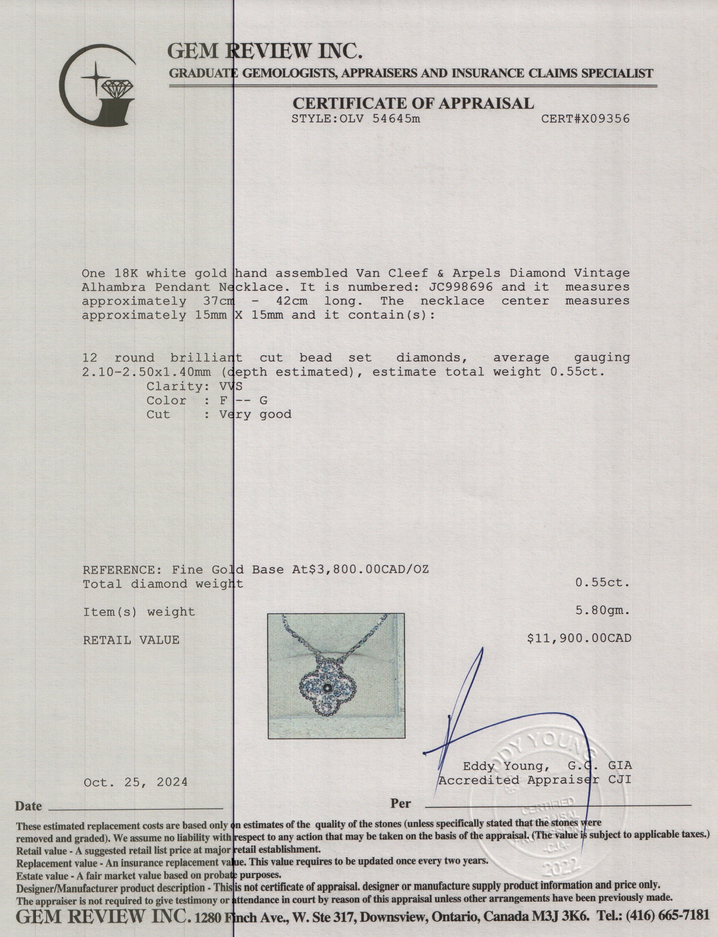 2022 18k White Gold Diamond Vintage Alhambra Pendant Necklace w/ Box & Certificate
