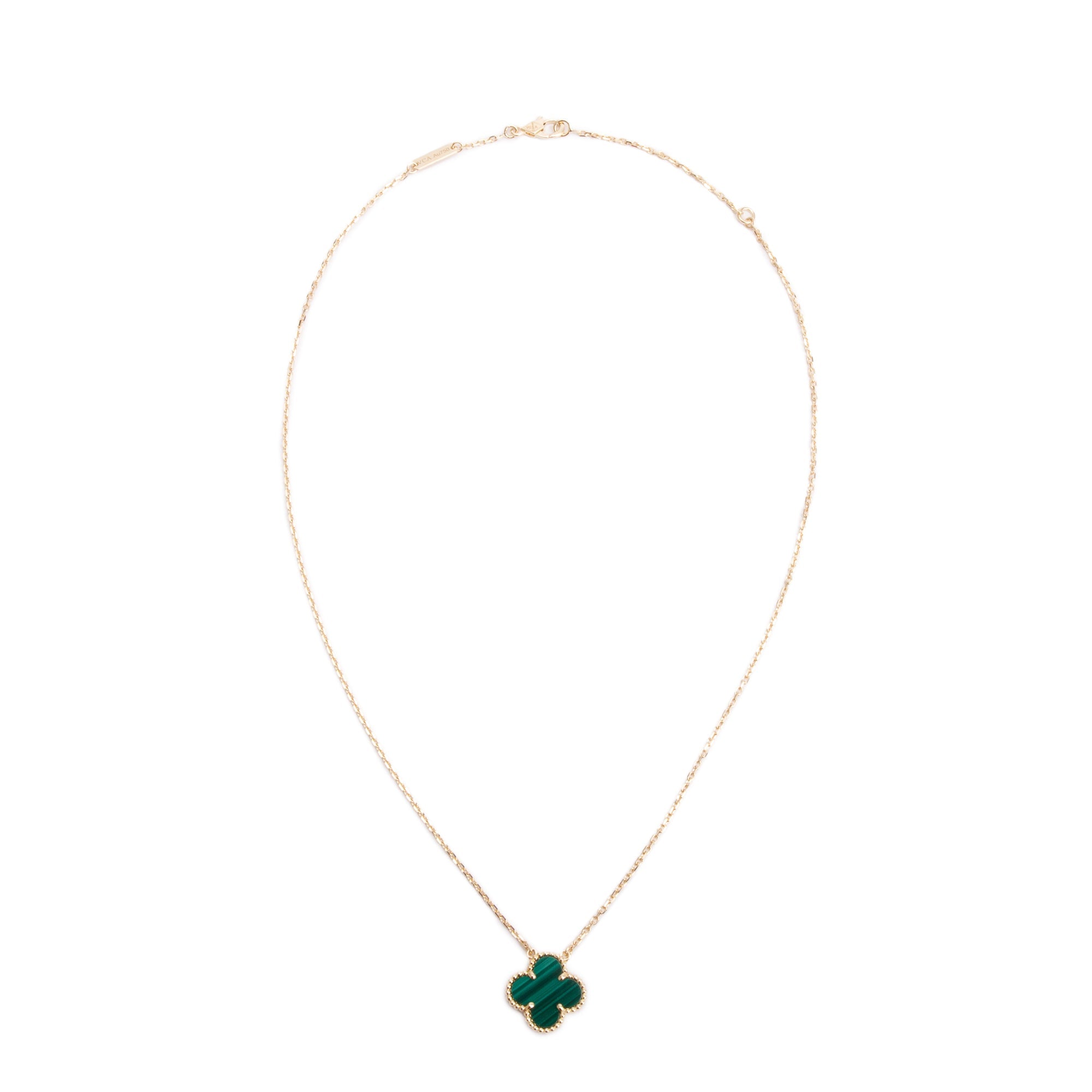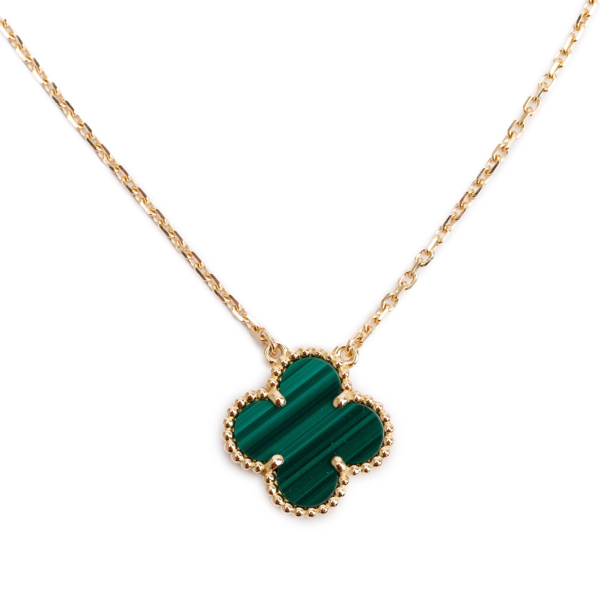 2022 18k Yellow Gold Vintage Alhambra Malachite Pendant Necklace w/ Box & Certificate