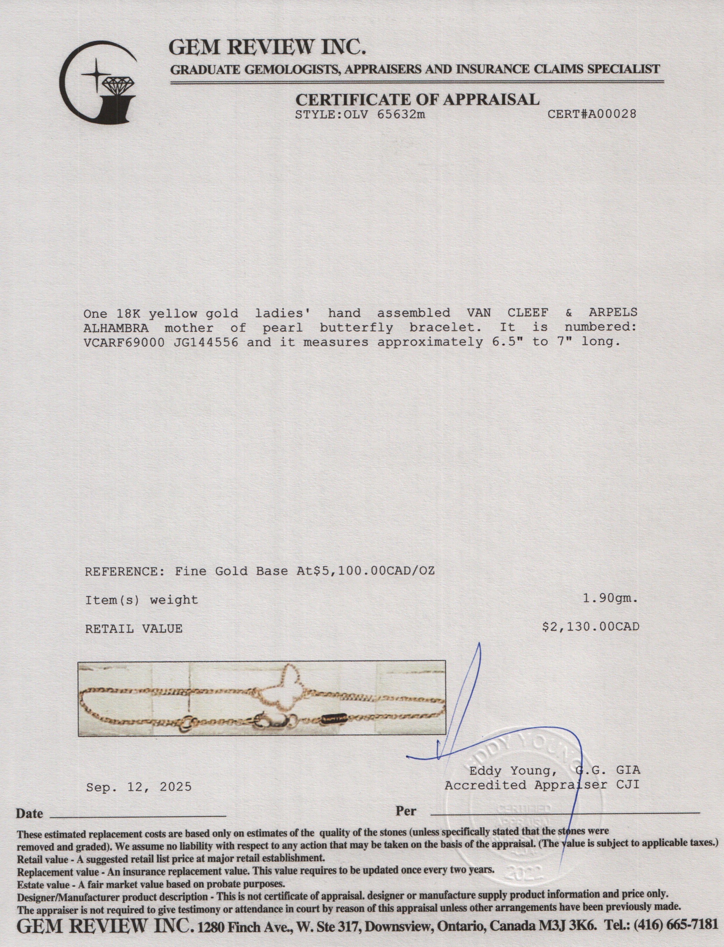 2024 18k Yellow Gold Mother of Pearl Sweet Butterflies Bracelet w/ Box & Certificate